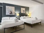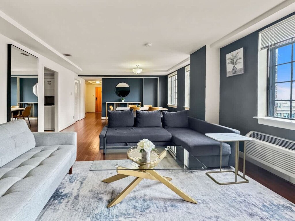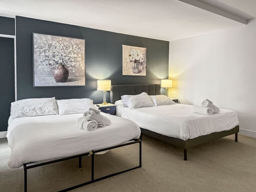 Located in the heart of Philadelphia's vibrant Center City, this 2-bedroom apartment offers an ideal blend of urban convenience and modern living. This prime location places you within walking distance of some of the city's most iconic landmarks, cultural attractions, dining hotspots, and shopping destinations. This stylish retreat offers a perfect blend of comfort, convenience, and entertainment amenities, ideal for families or groups visiting the city. Sleep comfortably in the expansive first bedroom, furnished with two double beds, accommodating larger groups or families with ease. Relax in the second bedroom featuring a plush queen-sized bed, a crib, and a dedicated workspace, perfect for remote work or catching up on emails during your stay. Enjoy relaxation and entertainment in the living room, equipped with a comfortable sofa bed for additional sleeping arrangements. Cook meals with ease in the fully equipped kitchen, complete with modern appliances and essential cookware. Meticulously cleaned and maintained, the bathrooms provide a hygienic and welcoming space for your stay. Take advantage of premium on-site amenities, including a full basketball court for a friendly game or solo practice and a modern gym equipped with everything you need to stay on top of your fitness routine. Whether you're looking to break a sweat or just unwind, you'll have everything you need right at your doorstep. Centrally located in Center City, you're surrounded by renowned restaurants, theaters, shopping centers, and cultural attractions. Explore nearby landmarks like the Philadelphia Museum of Art, Rittenhouse Square, and the lively atmosphere of Avenue of the Arts. Smoking is strictly prohibited inside the property. A cleaning fee of $500 will be charged for any violation. Check-in time is after 4 PM, and check-out time is by 10 AM. Late check-outs without prior approval will incur additional charges. Please dispose of garbage in the designated bins and do not leave trash outside the unit to avoid attracting pests. Treat the property and its contents with respect. Any damages will be charged to the guest. Ensure that the shower curtain is kept inside the shower basin while showering to prevent water from spilling onto the floor. [SI]