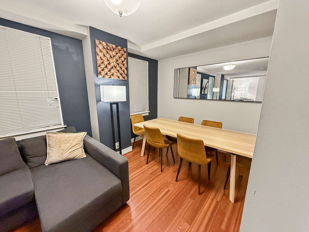 Feel at home in this stylish 2-bedroom, 2-bathroom apartment in the heart of Philadelphia, steps from City Hall, Love Park, and Reading Terminal Market. This bright and spacious apartment features a fully equipped kitchen with modern appliances, cookware, and utensils, and an adjacent dining area. The living room is inviting, with ample seating and a pool table. Additional amenities include high-speed Wi-Fi and laundry facilities. A sofa bed is available for extra guests. Located in downtown Philadelphia, this apartment is within walking distance of iconic landmarks, restaurants, cafes, museums, and shopping. The area is well-connected by public transportation, making it easy to explore other parts of the city. Smoking is strictly prohibited inside the property. A cleaning fee of $500 will be charged for any violation. Check-in time is after 4 PM, and check-out time is by 10 AM. Late check-outs without prior approval will incur additional charges. Registration Number: 545021 [SI]