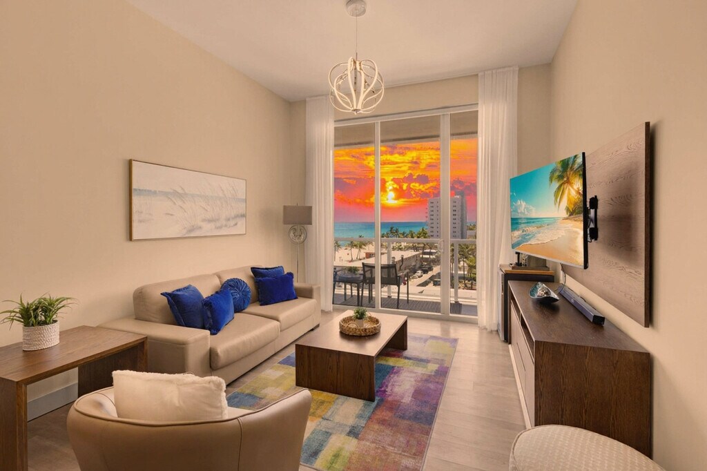 The advertised rate of $4,768/month is the lowest available price, based on a 30 day(s) stay with a move-in date of August 21, 2026. Rates vary depending on the duration of stay, season, and other parameters. For exact pricing and additional pricing components, please visit our website and enter your desired move-in and move-out dates. The rate is applicable when billed upfront; it can be higher if billed in multiple payments. Feel at home in this top-floor stylish apartment with ocean views, steps from the legendary Hollywood Beach Broadwalk. This apartment accommodates up to 6 guests. This brand-new apartment offers all the comforts you need, mixing natural wood and stone with organic textures and state-of-the-art technology. The fully equipped gourmet kitchen features a stainless steel refrigerator/freezer, a glass stove, an integrated oven, a silent dishwasher, an integrated microwave, dishes, a coffee maker, and a toaster. The spacious bedroom includes a hairdryer, an electronic safe, an iron/ironing board, and TVs. The apartment is fully furnished with ceramic floors, electronic door locks, European-style cabinetry, and modern-style designer fixtures and faucets. Enjoy access to the rooftop infinity pool and lounge area with amazing ocean and Intracoastal views. A pack-n-play crib is available upon request. Parking is available at the condo for $42 a day, or you can obtain a public parking pass for the whole month for $110 plus taxes, allowing you to park on any street or city parking lot (300 Connecticut St). Located along North Ocean Drive in the lively community of Hollywood Beach, this apartment puts you at the heart of the action. Within walking distance of the famous Hollywood Beach Broadwalk and the beach, you can enjoy exciting activities such as jet skiing, fishing, sailing, biking, and golf. South Beach and Miami are a short drive away. The Broadwalk, paved with bricks, has bars, restaurants, boutiques, and shops. For a local experience, visit The Le Tub Saloon, GG's Waterfront Grill, El Tayta, and Taverna Opa. A resort fee will be charged at check-in. Swimming is at your own risk; there is no lifeguard on duty. Children must be supervised by an adult at all times. No diving or running is allowed. Keep all doors closed and the air conditioning on at all times to prevent condensation and property damage. The public beach and Broadwalk within the City of Hollywood Beach do not allow pets (service animals are welcome!). [SI]