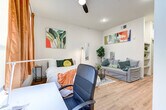 The advertised rate of $2,605/month is the lowest available price, based on a 30 day(s) stay with a move-in date of May 1, 2026. Rates vary depending on the duration of stay, season, and other parameters. For exact pricing and additional pricing components, please visit our website and enter your desired move-in and move-out dates. The rate is applicable when billed upfront; it can be higher if billed in multiple payments. Feel at home in this cozy studio, perfect for long-term stays and ready to host your next adventure in Houston. This carefully crafted studio is designed to accommodate solo travelers, couples, and small families. It features a cozy and modern queen bed with plenty of pillows, central AC and heat, and a fully equipped kitchen with a blender, Keurig coffee maker, and toaster. Enjoy access to the rooftop pool. Located in the Washington Heights area of Houston, this apartment is within walking distance of many restaurants and bars on Washington Avenue, yet insulated from the noise. A Walmart and HEB grocery store are within a 1-mile radius. Popular destinations include Bottle Blonde, Lincoln Bar, The Heart, Handle Bar, Standard Bar, Sugar Room, Clutch Bar, Underdog Pub, Kung Fu Saloon, FM Kitchen & Bar, Velvet Tacos, ZOA Moroccan Restaurant, Cabo Baja Tacos, Napoli Wine Cafe, Lupe Tortilla, Jax Grill, and Spaghetti Western. The Houston Galleria is a 15-minute drive, NRG Stadium is 18 minutes, Downtown Houston is 10 minutes, Texas Medical Center is 20 minutes, White Oak Music Hall is 7 minutes, Rice University is 13 minutes, Texas Southern University is 18 minutes, University of Houston is 18 minutes, the Museum District is 18 minutes, The Bell Tower at 34th is 10 minutes, Memorial Park is 5 minutes, Memorial Hermann Greater Heights is 10 minutes, William P. Hobby Airport is 25 minutes, and George Bush Airport is 35 minutes away. Houston is a big city, so everything is spread out. The best way to get around is by car or ride-sharing apps like Lyft or Uber. I cannot be held responsible for any failure in shared amenities. Please pay careful attention to the check-in info provided. Includes a workstation for business travelers and conference visitors. [SI]