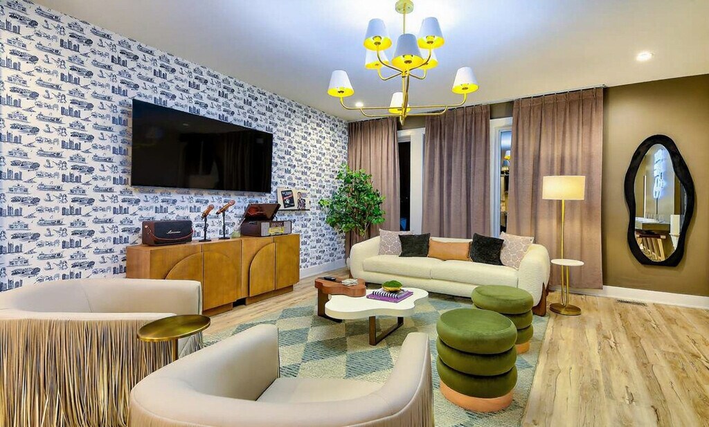 Feel at home in this vibrant 4-bedroom, 4-bathroom retreat with Nashville skyline views from your private rooftop hot tub. Sleeping up to 12, this apartment is perfectly located just minutes from downtown Nashville. This apartment features an open-concept living area with a plush sectional, stylish décor, and a fully equipped chef's kitchen with stainless steel appliances and bar seating. Each bedroom is designed for comfort with plush bedding, smart TVs, and USB charging outlets. The game room awaits with arcade games, shuffleboard, cornhole, and cozy seating. The private rooftop patio is your sky-high oasis with a hot tub and a table for eight for al fresco dining. Up to 2 dogs are allowed for $125 per stay. Minutes from downtown, you're perfectly positioned to experience Nashville's best. Nearby attractions include The Parthenon (2.3 miles), Ryman Auditorium (3.0 miles), Country Music Hall of Fame & Museum (3.7 miles), and WhatLiftsYou Wings Mural (3.2 miles). Local restaurants include Jack’s Bar-B-Que (0.9 miles), Triple J’s Café (1.1 miles), Shugga Hi Bakery & Café (1.3 miles), and Fancypants (1.4 miles). No cats are allowed. Please crate train your dog and pick up after it. No parties are allowed—violations may result in immediate termination of the stay. Guests must be 21 years or older to book this property. Check-in is at 4pm and check-out is at 10am. [SI]
