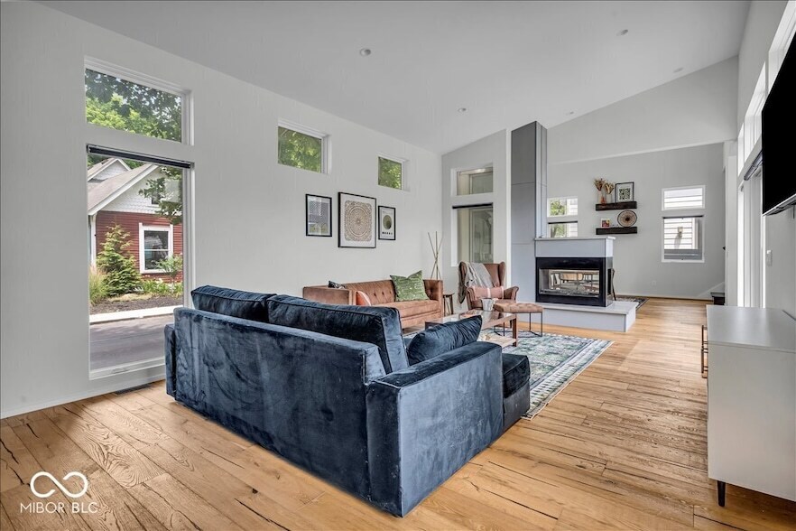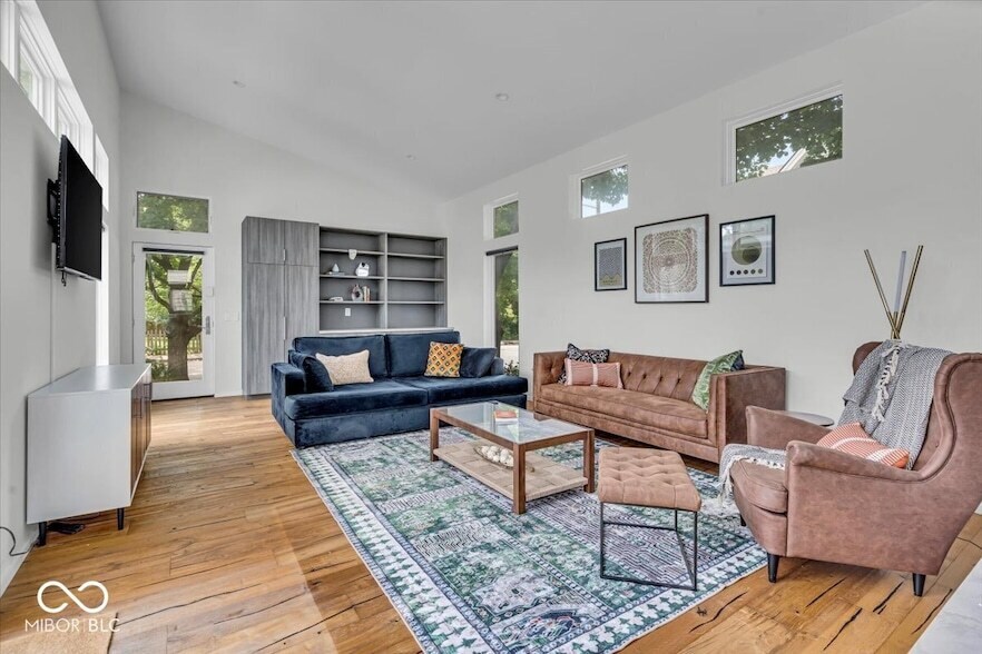 Welcome home to this beautifully furnished, newer construction residence, walkable in minutes to the renowned BOTTLEWORKS and FACTORY ARTS DISTRICTS of Indianapolis! Sojourn to 8th Day Distillery, Centerpoint Brewing, Sidedoor Bagel, the Bottleworks Hotel, the Garage Food Hall, Modita and more, within steps of your sweet front porch. This truly impressive home COMES FULLY FURNISHED and boasts an open-concept floor plan with sleek finishes, soaring ceilings and streams of natural light. Well-appointed chef's kitchen is complete with stainless steel appliances, sparkling countertops and a large island perfect for entertaining. Convenient main floor auxiliary bedroom offers plenty of space for family, guests or even a home office. Upstairs, the primary suite is a true retreat, boasting a generous sitting area and spa-like ensuite bath. Lower level is perfect for movie nights and gaming and hosts a third bedroom for ultimate versatility. Outside, enjoy ample space to relax with friends under the stars around the cozy gas firepit. Tandem 2-car garage provides room for all your toys. With its unbeatable location, you'll have effortless access to gourmet restaurants, local indie shops and enthralling entertainment. Don't miss out on the opportunity to call this contemporary gem your new home!