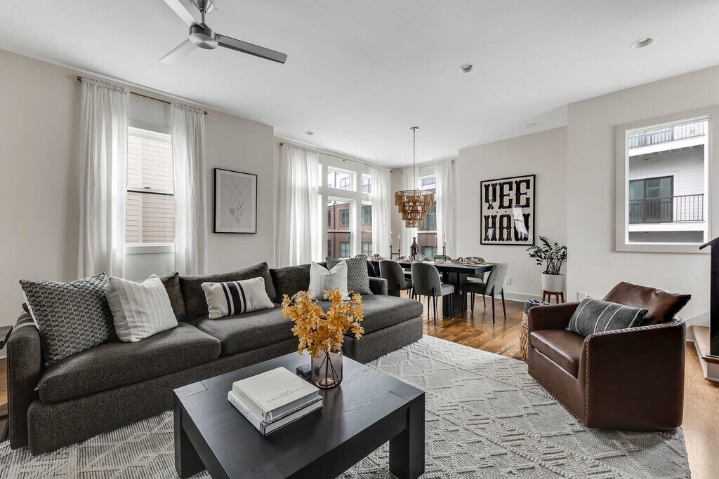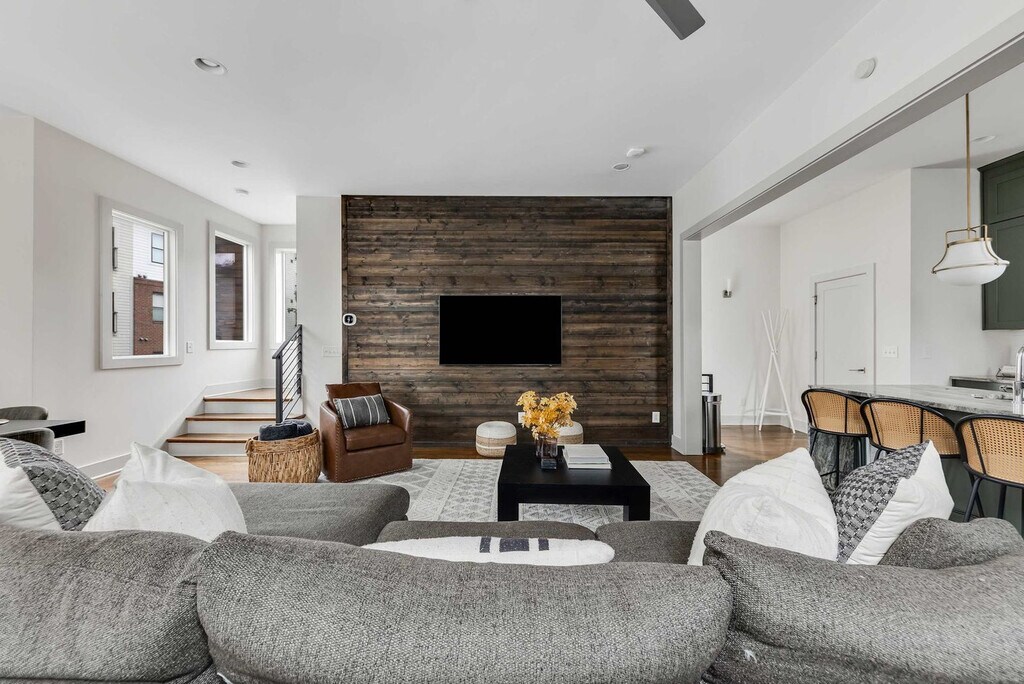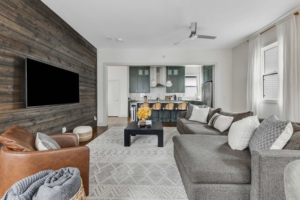 Welcome to The Wade, a newly redesigned 3-story retreat less than 2 miles from Broadway. Feel at home in this modern home featuring a bright, open layout and curated décor by a local designer. Stairs are required for access to the main living area, which is located on the second floor, and the rooftop terrace is on the fourth floor. This home features a rooftop patio with a dining table, lounge chairs, a cozy seating area with a 55-inch TV and a firepit. The bonus area includes a sauna, a Peloton bike, and a ping pong table. The top-of-the-line, fully equipped kitchen and smart TVs throughout make this home perfect for entertaining. Enjoy a reliable high-speed Wi-Fi connection. This is a dog-friendly property with a pet fee of $150 per stay for up to 2 dogs. There are no breed or weight restrictions. Nestled at the intersection of Nashville's vibrant 12th South and Edgewood neighborhoods, this home places you right in the heart of the city, with everything Nashville has to offer just 10 minutes away. A cozy coffee spot, Makai, and Smoothie King are just a block away. Within a short drive or a leisurely 10-15 minute walk, you'll discover fantastic restaurants, bars, and boutiques such as Barcelona, Sadie’s, Lady Bird Tacos, Fonda, The Buttermilk Ranch, and Burger Up. The Gulch and 12 South are just 5 minutes away, and Vanderbilt is also just 5 minutes away. Broadway is 6 minutes away, Nissan Stadium is 8 minutes away, Five Points (East Nashville) is 10 minutes away, and Germantown / Sounds Stadium is 12 minutes away. Quiet hours are from 11 p.m. to 8 a.m. There will be an additional cleaning fee of up to $500 for violations of the house rules or for excessive cleaning required. Registration Number: CASR [SI]