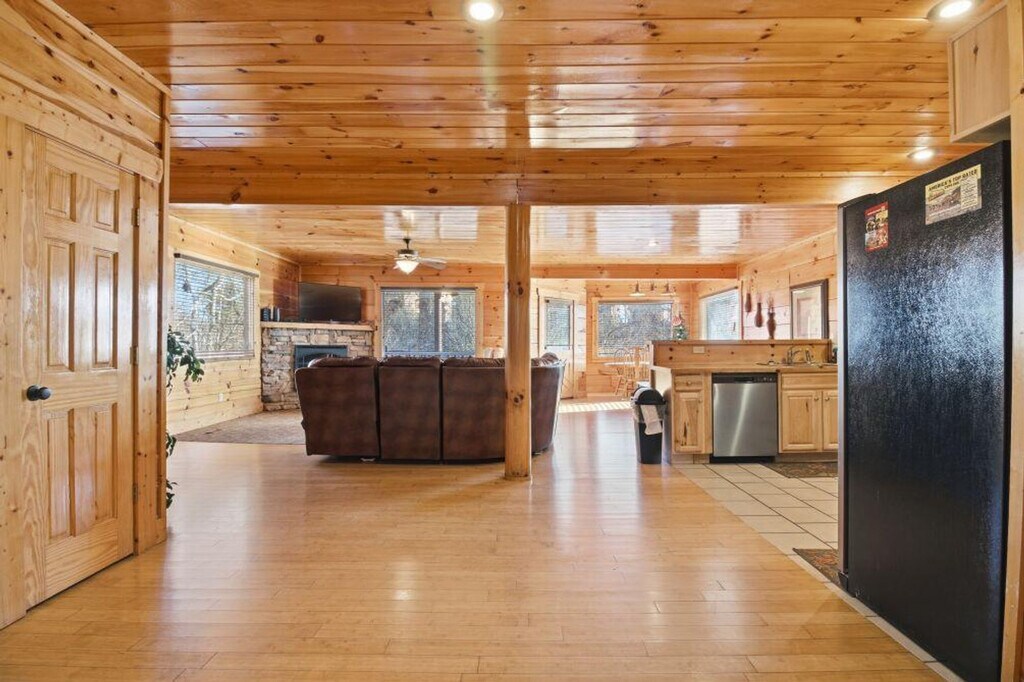 Feel at home in this spacious multi-level cabin in Sevierville, designed for laughter and unforgettable mountain memories. Located less than a mile from Wahoo Ziplines, this cabin offers privacy and peaceful wooded views. This cabin delivers comfort and entertainment, featuring a cozy living room with a gas fireplace and multiple flat-screen TVs. The fully equipped kitchen makes meal preparation easy. Enjoy the pool table, board games, classic games, and an original Xbox for nostalgic fun. High-speed Wi-Fi and smart TVs are available for streaming. The private hot tub offers wooded views, and the gas grill is perfect for outdoor cooking. The property has a private driveway suitable for 2-3 cars. Conveniently located just four miles from downtown Sevierville and nine miles from Dollywood, this cabin offers quick access to top attractions while staying close to nature. Great Smoky Mountains National Park, Dollywood, The Island in Pigeon Forge, Smoky Mountain Deer Farm & Exotic Petting Zoo, Forbidden Caverns, Foxfire Mountain Adventure Park, and Tanger Outlets Sevierville are all nearby. At least one guest must be 25 years or older. Smoking, pets, and parties are not allowed. Any violation of the smoking policy will incur a $400 fine plus the cleaning costs necessary to remove smoke odors from the unit/house and/or linens. Some of the mountain roads can be steep and winding, so drive cautiously. [SI]