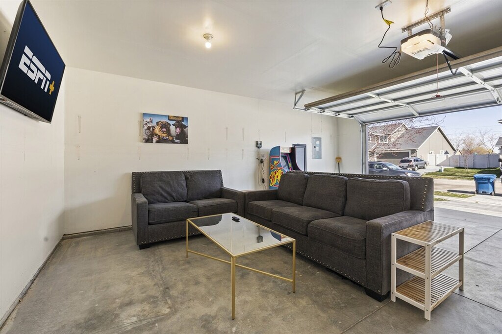 Indulge in this remodeled Nampa home, where you can feel at home with its inviting features. Relax in the 7-person hot tub and lounge seat, or enjoy the patio with a grill and fire pit. This single-family home offers three bedrooms, a spacious living room, a large patio, and a game room in the garage, accommodating up to nine people. The property is conveniently located near Nampa High School, NNU, Lake Lowell, and major hospitals, with quick highway access to Boise and Meridian. Designed with your comfort in mind, this home features TVs in every room except the bunk room, and a game room with foosball and basketball. The fully stocked kitchen is perfect for preparing anything from a quick snack to a gourmet meal. Enjoy the convenience of an in-house washer and dryer, and seamless connectivity with fast Wi-Fi, ideal for remote work. This pet-friendly home welcomes your furry friends, allowing you to bring them along on your trip. Parking includes two driveway spots and street parking, as the garage is used as a game room. Situated in a prime location, this home offers proximity to Nampa High School, NNU, Lake Lowell, and major hospitals like St. Lukes and St. Als. With quick highway access, you can easily reach Boise and Meridian, making it a convenient base for exploring the area. The garage is used for the game room, so parking is available in the driveway and on the street. The house is on the smaller side, which may make the bedrooms feel a bit compact, but the living room, garage, and patio are designed as great hangout areas. Enjoy easy self-check-in via a secure door keypad, ensuring a smooth arrival. With fast Wi-Fi, this home is remote work-friendly, allowing you to stay connected and productive during your stay.
