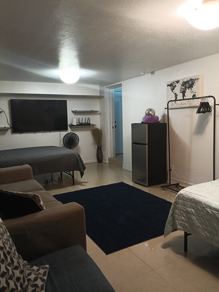 Property Id: 2477241 Spacious cozy room for rent, and shared bathroom, in welcoming house. Furnished with two queen beds, couch, and 65“ Smart TV. We are located just east of 95, right off Davie Blvd. in a quiet residential neighborhood. Corner market, with Cafe, McDonalds’, Walmart, Family Dollar, Bus Stop, ETC. within walking distance. Weekly rental, with possibility of long term for right candidate. We are a chill house, but please no party animals, and ask that you be respectful of the house, and people in it. Contact for more information.