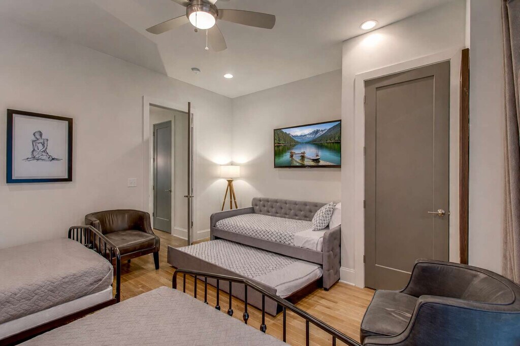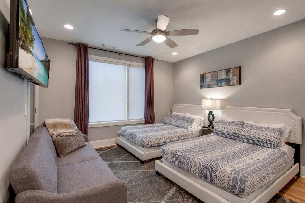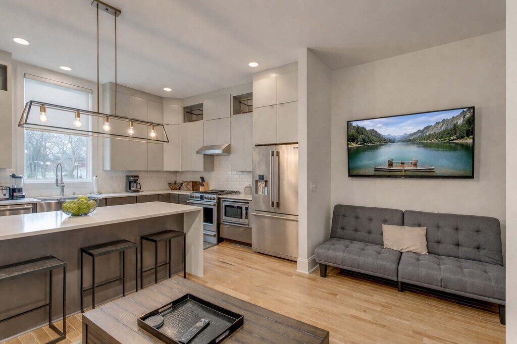 The advertised rate of $8,702/month is the lowest available price, based on a 30 day(s) stay with a move-in date of July 28, 2026. Rates vary depending on the duration of stay, season, and other parameters. For exact pricing and additional pricing components, please visit our website and enter your desired move-in and move-out dates. The rate is applicable when billed upfront; it can be higher if billed in multiple payments. Feel at home in this modern home, perfect for large groups and located less than 2 miles from Lower Broadway, Nissan Stadium, Bridgestone Arena, and Nashville’s famous honky-tonks. This home is on the 4th floor. This home features an open-concept kitchen, living, and dining area, a fully stocked kitchen with bar seating, and a spacious living room area. It also includes a washer and dryer, smart TVs, and Wi-Fi. The kitchen is equipped with a large stainless-steel fridge, multi-burner stove with range hood, dishwasher, microwave, coffee maker, and an island counter with seating. A starter supply of paper goods and household necessities is provided, including bath tissue, paper towels, trash bags, dish soap, hand soap, shower gel, laundry detergent, shampoo, conditioner, body soap, clothing storage, and a hair dryer. This home includes a 2-car garage. Early bag drop is available by request for an additional $50. Nearby places of interest include Biscuit Love (Hillsboro Village) at 0.8 miles, Hopdoddy Burger Bar at 0.9 miles, Marsh House at 1.0 mile, The Butter Milk Ranch at 0.9 miles, and Diskin Cider at 1.6 miles. Smoking is allowed on the rooftop patio as long as it is cleaned up after. Any noise complaints or law enforcement calls to the home will result in immediate termination of your stay without a refund. Guests are required to sign a rental agreement and must be 18 years old to rent. Strictly a no-pet policy at home. We can host a maximum of 12 guests (including all adults, children & infants). [SI]