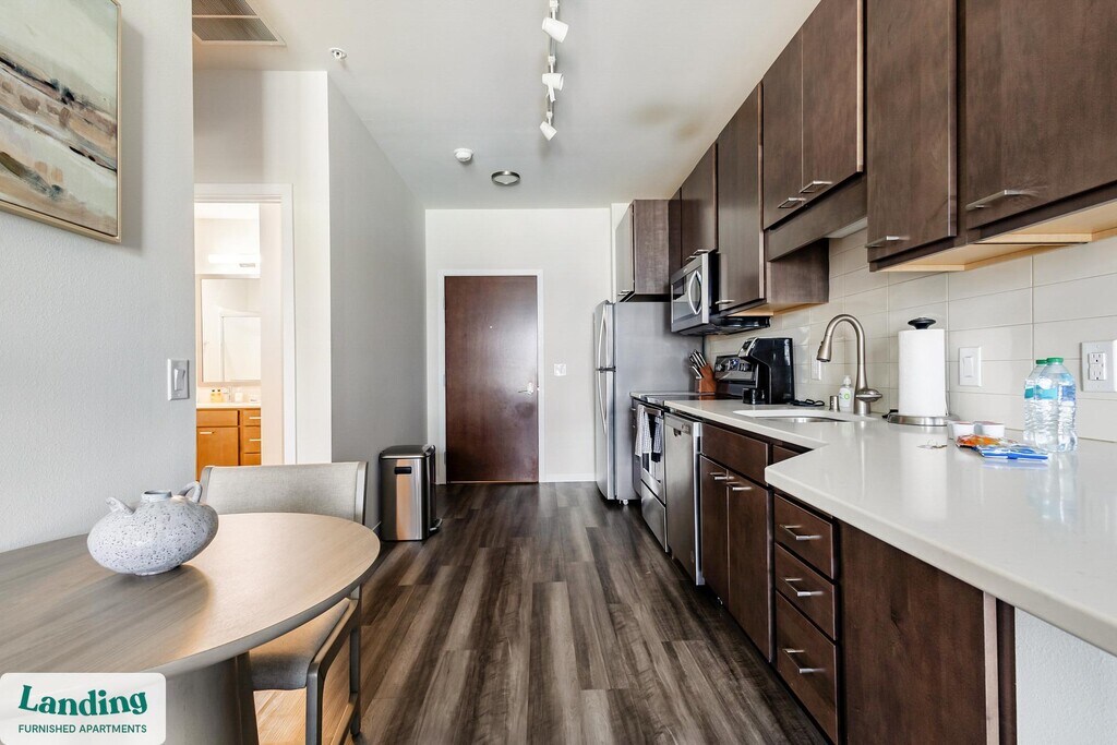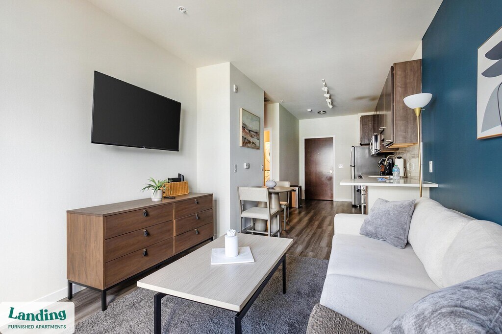 Landing offers flexible lease terms from weeks to months. Please always visit our website or contact us for the latest pricing & availability. Stay longer, save more: 6-Month Minimum base rent: starts at $1940/mo 12-Month Minimum base rent: starts at $1686/mo Landing offers flexible leases across a network of over 35,000 fully-furnished apartments throughout 375+ cities so you can rent on your terms, practically anywhere, and avoid the hassle of paying deposits or application fees. Visit to learn about all the benefits of a Landing membership, see our competitive up-to-date pricing, explore available apartments, take virtual tours, and make reservations online without jumping through traditional rental hoops. Landing's apartments at Synergy at the Mayfair Collection are designed for comfortable, easy living, with the ability to stay as long as you like. Experience living with Landing Every apartment is outfitted with all the modern essentials including: custom-designed furnishings, a fully-equipped kitchen with deluxe stainless steel appliances, a gourmet coffee maker, premium linens, Smart TVs, and incredibly fast, reliable internet for working from home. When you live with Landing, you'll enjoy a hassle-free experience with the added benefit of 24/7 access to our dedicated member experience team. Some of the nitty-gritty: a background check and proof of income are required; we're completely smoke-free; bundled utility packages and pricing vary based on length of stay; pet-friendly options available; listed price reflects a 12-month minimum stay.