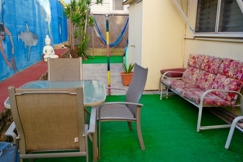 Property Id: 436572 Private breezy fully furnished corner studio. Off-street reserved parking. INCLUDES ALL UTILITIES, such as electric, gas, water, trash, and pest service plus cable and WI-FI! To move in, $1250 (first month's rent) + $1100 deposit is required. Reserved Parking is $50/month or $20/month for moped parking. Single occupancy. 1 year minimum lease. No smoking. No pets. Ceiling fans throughout. AC not included. Fully furnished studio with main floor entrance. Bathroom with a shower and tub. Furnishings include a full size bed, bedside table, dresser, dining table with chairs, smart tv, and more. Also, includes a refrigerator, microwave, convection oven, 2 burner cooktop, coffee maker and other kitchen items. The closet is a nice size with 2 sliding mirror doors. Additional full kitchen in the common area of the building with additional selection of kitchen appliances (juicers, blenders, fryers, rice cooker, crock pot, etc). Aloha Abode has many common area amenities that give the building a community vibe among the residents. Building amenities include a community garden, pond w/ turtle "Queenie", BBQ, outdoor shower and patio dining area. There is also a community living room, dining room and kitchen. Bikes and surfboards available for use. On-site coin-operated washers and dryers on back patio in fenced back yard. Conveniently located in the Kaimuki/Kapahulu neighborhood of Honolulu. Walking distance to many stores, food, bars, etc. Less than a block to Chaminade University and to the rainbow shuttle to UH Manoa. Close to Waikiki, Diamond Head, Kahala, Ala Moana and the H1.
