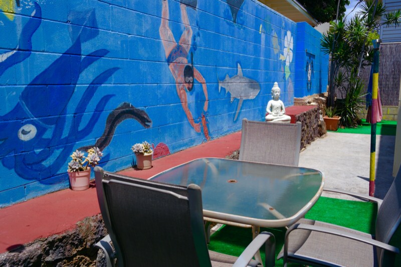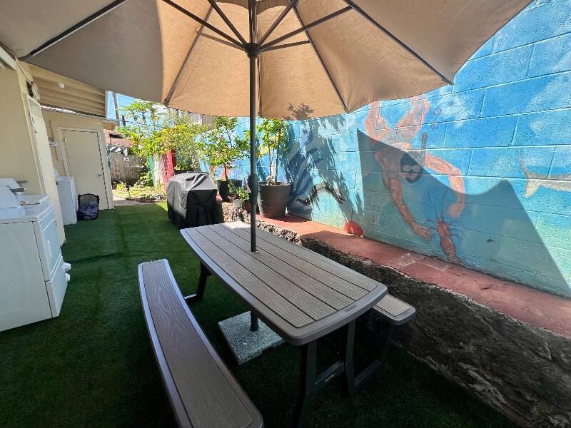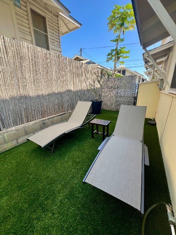 Private breezy fully furnished corner studio. Off-street reserved parking. INCLUDES ALL UTILITIES, such as electric, gas, water, trash, and pest service plus cable and WI-FI! To move in, $1250 (first month's rent) + $1100 deposit is required. Reserved Parking is $50/month or $20/month for moped parking. Single occupancy. 1 year minimum lease. No smoking. No pets. Ceiling fans throughout. AC not included. Fully furnished studio with main floor entrance. Bathroom with a shower and tub. Furnishings include a full size bed, bedside table, dresser, dining table with chairs, smart tv, and more. Also, includes a refrigerator, microwave, convection oven, 2 burner cooktop, coffee maker and other kitchen items. The closet is a nice size with 2 sliding mirror doors. Additional full kitchen in the common area of the building with additional selection of kitchen appliances (juicers, blenders, fryers, rice cooker, crock pot, etc). Aloha Abode has many common area amenities that give the building a community vibe among the residents. Building amenities include a community garden, pond w/ turtle "Queenie", BBQ, outdoor shower and patio dining area. There is also a community living room, dining room and kitchen. Bikes and surfboards available for use. On-site coin-operated washers and dryers on back patio in fenced back yard. Conveniently located in the Kaimuki/Kapahulu neighborhood of Honolulu. Walking distance to many stores, food, bars, etc. Less than a block to Chaminade University and to the rainbow shuttle to UH Manoa. Close to Waikiki, Diamond Head, Kahala, Ala Moana and the H1.