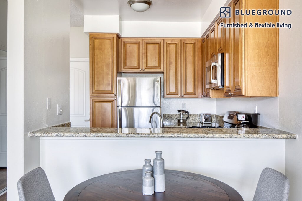 Feel at home wherever you choose to live with Blueground. You’ll love this stylish North Hollywood furnished one bedroom apartment with its modern decor, fully equipped kitchen, and bright living room. Ideally located, you’re close to all the best that Los Angeles has to offer! (ID #LAX515) The advertised rate of $2,290/month is the lowest available price, based on a 4 month(s) and 2 day(s) stay with a move-in date of November 4, 2025. If you’re looking for a 1-year stay, the rate is $2,560/month. Rates vary depending on the duration of stay, season, and other parameters. For exact pricing and additional pricing components, please visit our website and enter your desired move-in and move-out dates. The rate is applicable when billed upfront; it can be higher if billed in multiple payments. Brokers are welcome to reach out. Were you looking for an unfurnished lease? Try Blueground instead and upgrade from unfurnished to furnished living: - Furnished at rates comparable to unfurnished - No setup or furniture costs - save thousands - Move-in ready - save time, just bring your suitcase Designed with you in mind As with any Blueground apartment, you’ll find a thoughtfully designed space complete with beautiful furniture and a fully equipped kitchen in this one bedroom property. And, thanks to our superior quality mattresses, luxury linens, and towels, you can relax knowing you’ll always feel comfortably at home. When you’re ready for some fun, you can take in the Los Angeles vibes or bring the entertainment to you with the premium wireless speaker or smart TV. Sleeping arrangements King Bed, 70.8in/180cm Amenities Building amenities unique to this one bedroom apartment include an on-site: - BBQ Area - Dryer in building - Elevator - Swimming pool - Washing machine in building - Parking - Pets allowed Arrival and ongoing support The entire apartment is yours to enjoy! Throughout your stay, you’ll have access to our Client Experience team through the Blueground App. You can schedule additional cleanings, submit maintenance requests, and view our neighborhood recommendations with just a few taps. We’ll share all details upon confirmation of your stay. Ideally Located This furnished apartment is located in North Hollywood, a trendy neighborhood in Los Angeles's San Fernando Valley. This highly desirable area has its own arts district as well as several playhouses. There are plenty of hip boutiques where you can shop for the latest fashions as well as convenient big box stores. It's easy to find a cool North Hollywood bar for a nightcap, and the neighborhood is known for great Mexican food. Although West Hollywood is walkable, most residents rely on cars to get to and from work. Other things to note Building amenities may have an extra cost. This Blueground apartment has flexible lease options, allowing you to book it for one month, a year, or more. Pets are welcome, though weight limits and breed restrictions apply and may incur fees. Parking is offered based on availability and is subject to a fee. We take great pride in ensuring every photo displayed is shot in our own units with our actual furnishings. That said, we regularly refresh our decor and furniture arrangement, which may differ from what’s pictured. [GO]