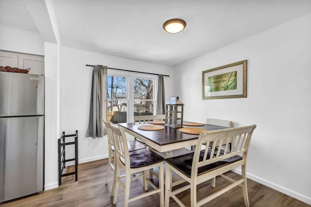 The advertised rate of $4,237/month is the lowest available price, based on a 30 day(s) stay with a move-in date of October 23, 2026. Rates vary depending on the duration of stay, season, and other parameters. For exact pricing and additional pricing components, please visit our website and enter your desired move-in and move-out dates. The rate is applicable when billed upfront; it can be higher if billed in multiple payments. Warm, comfortable, and thoughtfully set-up, this refreshed two-story home in Cuyahoga Falls is an easy place to settle in and feel at home, whether you’re visiting with family or friends. This home sleeps five, and it includes three bedrooms, three beds, and 1.5 baths. Enjoy full, private access throughout your stay. The main living area is bright and open, with comfortable seating and a Smart TV. The kitchen is available for guest use and includes everything needed for preparing meals at home. A dining table provides space to gather for meals, coffee, or games, making it easy to enjoy time together indoors during cooler weather. An in-unit washer and dryer are available, along with essentials like hangers, an iron, and extra linens. Central heating and air conditioning keep the home comfortable year-round. A maximum of two dogs are welcome for a flat fee of $125. Requests for a third or fourth dog are subject to approval and an additional $100. A kayak is also available seasonally. Natural light, comfortable furnishings, and a calm neighborhood setting make this two-story Cuyahoga Falls home an inviting place to slow down and settle in. A dedicated workspace is set up in a common area, providing a practical spot to check emails or work remotely. A private backyard offers outdoor space on the property. Free street parking is available. Parties are strictly prohibited, and any unauthorized gathering will result in immediate termination of the reservation without a refund, along with additional cleaning and damage fees. Please keep noise to a minimum when outside. Quiet hours are from 10 PM to 8 AM, and excessive noise may result in a $500 fine. Smoking inside the house is prohibited and will incur a $500 fine. Pets must be disclosed and approved in writing before your stay; undisclosed pets will result in a $150 fee and may lead to cancellation without refund. No cats are allowed. [SI]