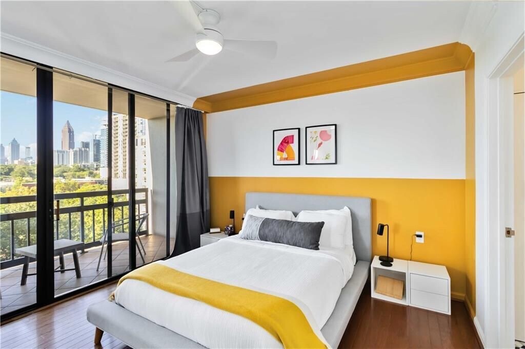 Fully furnished 2-bedroom, 2-bath luxury condo on the 11th floor in the heart of Midtown Atlanta, directly overlooking Piedmont Park with stunning skyline views. Approx. 1,110 sq ft high-rise executive residence featuring two private balconies, a chef’s kitchen with Monogram appliances, dramatic floor-to-ceiling windows, spa-inspired bathrooms with frameless glass and Hansgrohe fixtures, in-unit washer & dryer, and central air & heating. The primary suite offers balcony access and a boutique-style retreat, while the second bedroom doubles perfectly as a guest room or dedicated home office, ideal for executives, corporate relocations, medical professionals, or remote leaders seeking flexible 6, 9, or 12+ month lease terms. Ideal for extended business or personal stays, including fully furnished housing for film and television production teams, expats, international professionals, and corporate relocation clients. Enjoy resort-style amenities including a rooftop pool and amenity deck on the same level, full fitness center, recreation lounge, 24-hour concierge, and two secure parking spaces. Steps to the BeltLine, Midtown dining, Tech Square, and major employers, this move-in-ready condo delivers a true lock-and-leave luxury lifestyle in one of Atlanta’s most walkable neighborhoods. Rare opportunity to lease directly above Piedmont Park. Schedule a private showing today. Up to Two Months FREE RENT with approved applications. Reach out to agent for details.
