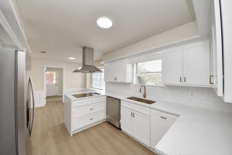 Property Id: 2393378 Welcome to this beautifully updated 4-bedroom, 2.5-bath home, transformed with over $85,000 in modern upgrades and ready for move-in. Nestled on a quiet, tree-lined street in Village West, the home offers quick access to Beltway 8, Westpark Tollway, I 10, and Highway 59, and is close to top West Houston amenities including Club Westside and Lakeside Country Club. With 2,358 square feet of living space, the home features soaring ceilings, a spacious living room, a dining or flex room, a formal living area, and a stylish wet bar. The primary suite is conveniently located downstairs along with a full and half bath, while three additional bedrooms and a full bath are upstairs. Natural light fills the home through skylights and large windows, complemented by blinds that balance brightness and privacy. The fully renovated kitchen includes new cabinetry, quartz countertops with a waterfall edge, subway tile backsplash, all-new appliances (oven/microwave combo arriving 3/12), and an under-mount sink. Gold hardware and fixtures add a warm, modern touch that carries throughout the home. The bar area has also been refreshed, making this an ideal home for entertaining. The primary bathroom is a standout, featuring an oversized walk-in shower with a sliding barn-door entry and two generous closets. Guest bathrooms have been completely updated with a new subway-tile shower, tubs, vanities, and modern gold finishes. Throughout the home, you'll find new ceiling fans, white oak style flooring, and neutral tile for a clean, contemporary look. Brand-new washer, dryer, and refrigerator are included. Homes like this don't stay on the market long apply today! First month and deposit due at lease signing. Initial lease of 2-3 yrs preferred (rent stays the same). Income 3x rent. Rental insurance required. Deposit 1x for 640+ credit, 1.5x for 600-639 credit. Credit/background/eviction checked.