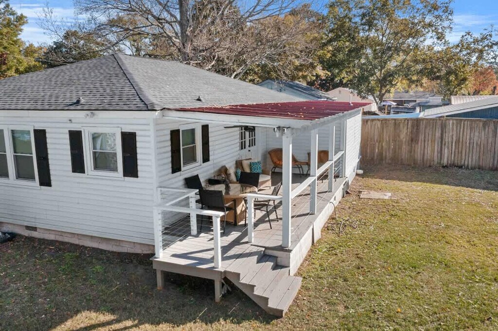 Welcome to this freshly renovated and thoughtfully designed 2-bedroom, 2-bathroom bungalow in Mt. Pleasant. Feel at home in the spacious living area, perfect for families and friends. This home is equipped with everything you will need to feel right at home. This home is pet-friendly and fully fenced. Parking is available in 2 spaces directly in front of the home. A pet fee of $100 applies. The house is in a traditional family neighborhood in south Mount Pleasant with tall trees and low traffic. Many great restaurants are at Shem Creek, with shopping centers nearby, and Boone Hall Plantation within 15 minutes. Enjoy views of the fenced backyard and serene pond with fountain from the private porch or patio. Explore Charleston and Mount Pleasant, from sandy beaches and historic sites to top dining and local attractions. Quiet time is at 10pm. No unregistered visitors are allowed. [SI]