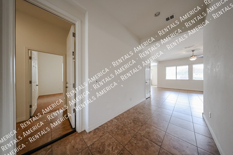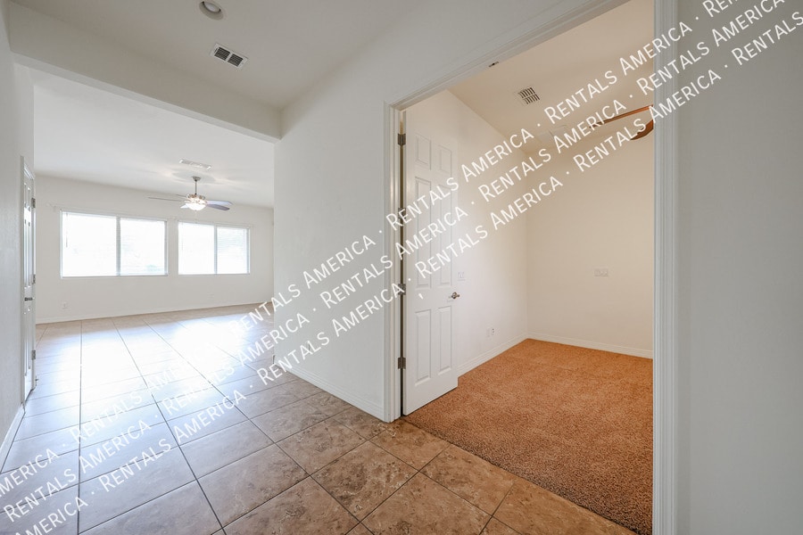 Thoughtfully designed for flexible living, this well-appointed home features an attached one-bedroom casita offering privacy and convenience. The casita includes its own full appliance packagerefrigerator, microwave, and dishwasheralong with a separate front entrance, rear access, direct entry from the one-car garage, and a private side yard. The main residence offers three bedrooms and two bathrooms with quality finishes throughout. The spacious great room opens to a covered patio and a low-maintenance backyard with faux turf, creating an ideal indooroutdoor living experience. The kitchen is well equipped with a walk-in pantry, gas range, stainless steel appliances, granite countertops, a large island, and antiqued cabinetry. The primary bedroom features a private exit to the patio, dual sinks, a walk-in closet, and a beautifully tiled walk-in shower. A third bedroom located near the front entry includes double doors, making it well-suited for use as a den or office. All bedrooms include walk-in closets. BBQ grill included in as-is condition. One Time Admin Fee $300; Pet Deposit $300/pet (No Cats); Service 2%; Accidental Damage Coverage $39/month, Helping Heroes Discount Available Disposal Dryer Garage Pets Allowed Washer