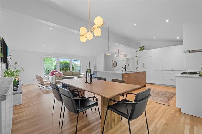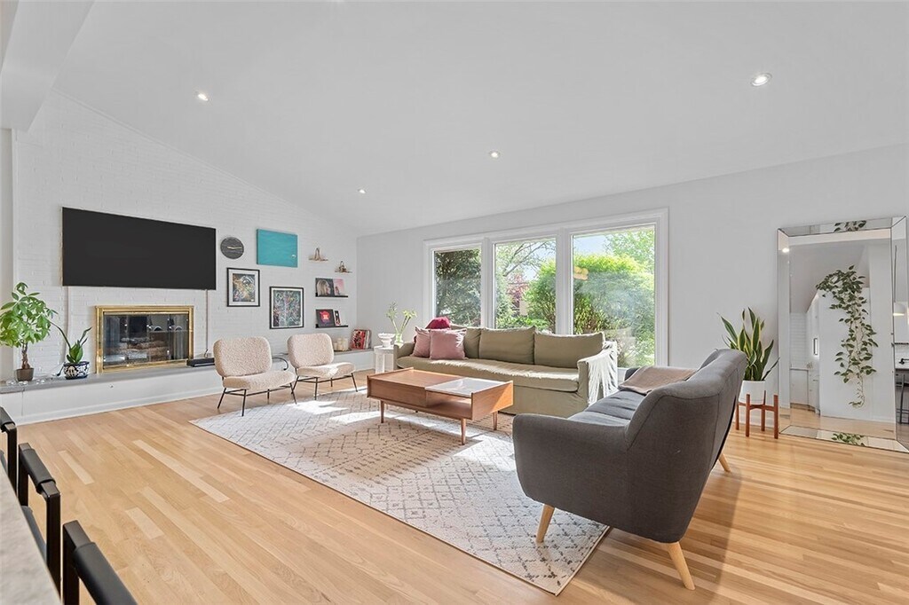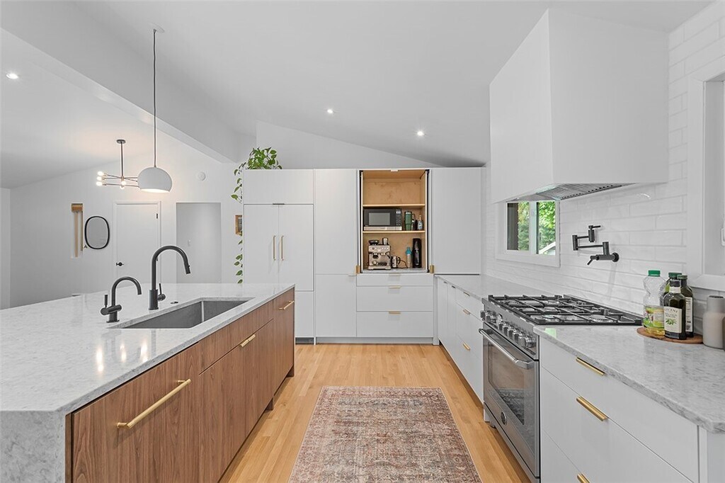 Property Id: 2425554 Top to Bottom revamping touched nearly every inch. Walls removed allowing natural light to flood in highlighting an entirely open floor plan w/ pristine white oak flooring providing seamless transitions from room to room. Magazine worthy kitchen to delight any chef in the family/locally made, custom cabs w/ every upgrade, Hi End appliances incl Bertazzoni gas range imported from Italy, Pot filler, Custom hood, Quartz countertops & 7x5 island w/ seating double waterfall edges, hot water faucet & even Pop-up outlets conveniently concealed within island. Absolutely no detail overlooked. Original touches vaulted ceilings, brick accent walls, Slate Entry blend perfectly w/ new enhancements - modern light fixtures, beautifully updated Baths.