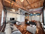 Loft living at its finest! This stunning and truly unique corner Penthouse Loft in the renowned Cigar Factory offers nearly 1,900 sq ft of contemporary loft-style living in the heart of Northern Liberties. With prime deeded garage parking, an additional storage unit, and electric charging stations, this home checks every box for convenience and luxury. Flooded with natural light from oversized windows spanning almost 100 feet, this dramatic space showcases panoramic views to the south, east, and west, including the Ben Franklin Bridge and Center City skyline. The residence features soaring 14' 21' ceilings, exposed beams, heavy timber ceilings, exposed brick, hardwood and tile flooring, and metal detailing, creating an authentic and architectural loft experience. The expansive open floor plan allows for endless possibilities, currently set with two living areas on either end and dining in the center. The thoughtfully positioned kitchen includes a breakfast bar, granite countertops, solid wood cabinetry, and stainless steel appliances. The Primary Suite, located just to the left upon entering, is a true retreat. Recently renovated, it features custom closets, a spacious walk-in closet, a beautifully tiled shower, Toto toilet, heated floors, dual floating vanity, all designed with a spa-like feel. On the opposite side of the condo you ll find the second bedroom area and another full bathroom, which also houses the washer and dryer for added convenience. Additional building amenities include a heated garage, elevator, and secure entry. All just two blocks from the Piazza and Liberty Walk, and moments from the neighborhood s top restaurants, caf s, and shops. Easy access to public transportation, I-95, and I-76 makes commuting a breeze. This Penthouse Loft is truly a rare offering an extraordinary home combining character, scale, and modern updates in one of Philadelphia s most vibrant neighborhoods. A must-see!