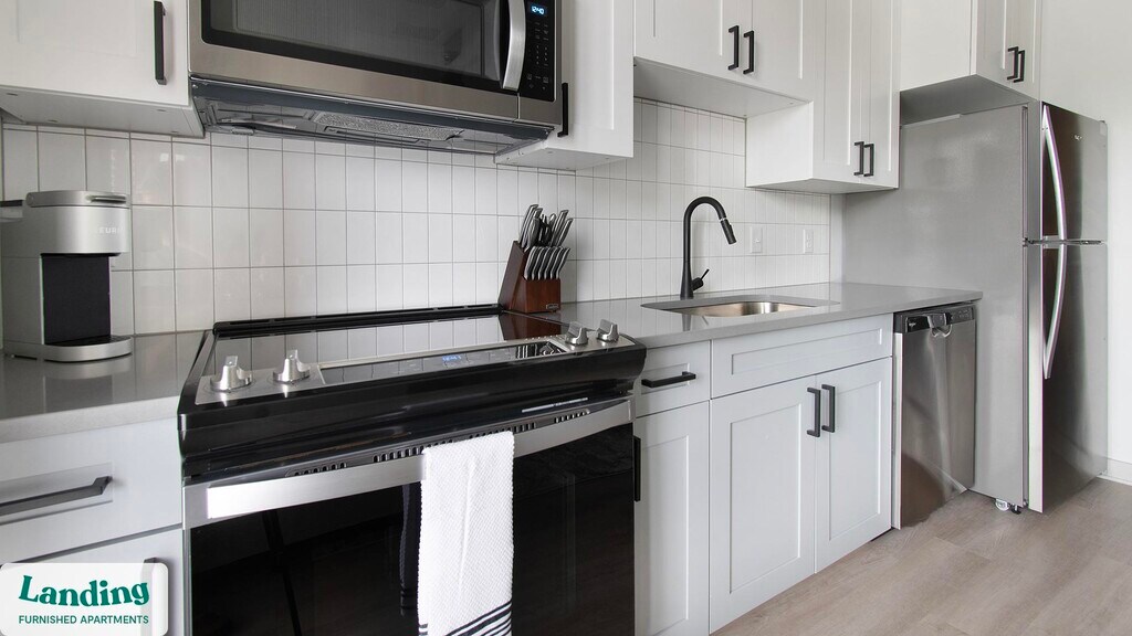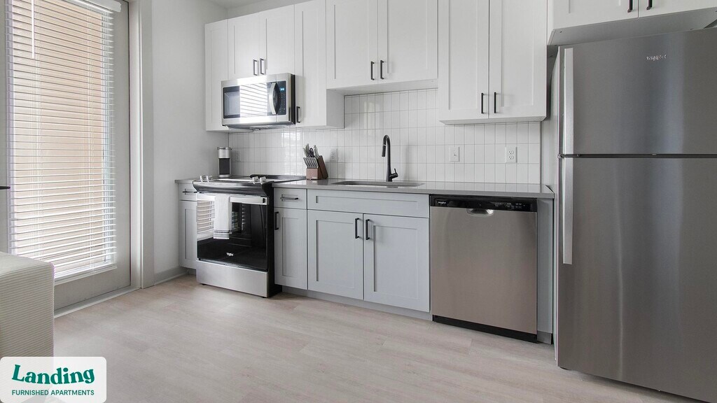 Landing offers flexible lease terms from weeks to months. Please always visit our website or contact us for the latest pricing & availability. Stay longer, save more: 6-Month Minimum base rent: starts at $2089/mo 12-Month Minimum base rent: starts at $1656/mo Landing offers flexible leases across a network of over 35,000 fully-furnished apartments throughout 375+ cities so you can rent on your terms, practically anywhere, and avoid the hassle of paying deposits or application fees. Visit to learn about all the benefits of a Landing membership, see our competitive up-to-date pricing, explore available apartments, take virtual tours, and make reservations online without jumping through traditional rental hoops. Landing's apartments at Corner on Main are designed for comfortable, easy living, with the ability to stay as long as you like. Experience living with Landing Every apartment is outfitted with all the modern essentials including: custom-designed furnishings, a fully-equipped kitchen with deluxe stainless steel appliances, a gourmet coffee maker, premium linens, Smart TVs, and incredibly fast, reliable internet for working from home. When you live with Landing, you'll enjoy a hassle-free experience with the added benefit of 24/7 access to our dedicated member experience team. Some of the nitty-gritty: a background check and proof of income are required; we're completely smoke-free; bundled utility packages and pricing vary based on length of stay; pet-friendly options available; listed price reflects a 12-month minimum stay.