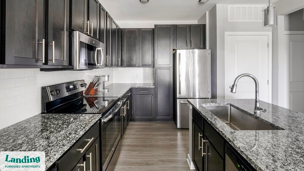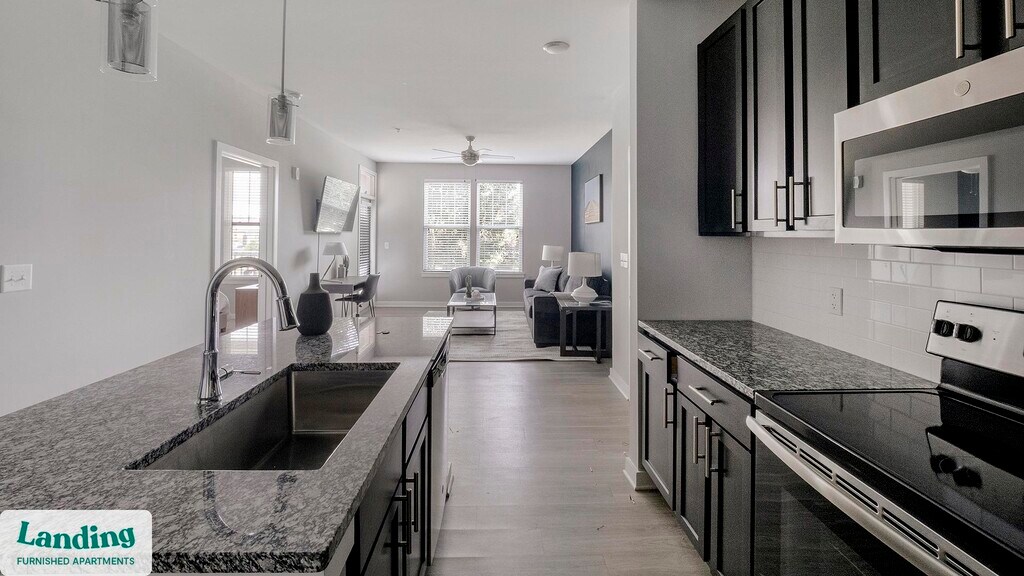 Landing offers flexible lease terms from weeks to months. Please always visit our website or contact us for the latest pricing & availability. Stay longer, save more: 6-Month Minimum base rent: starts at $2095/mo 12-Month Minimum base rent: starts at $1676/mo Landing offers flexible leases across a network of over 35,000 fully-furnished apartments throughout 375+ cities so you can rent on your terms, practically anywhere, and avoid the hassle of paying deposits or application fees. Visit to learn about all the benefits of a Landing membership, see our competitive up-to-date pricing, explore available apartments, take virtual tours, and make reservations online without jumping through traditional rental hoops. Landing's apartments at Elevate at Brighton Park are designed for comfortable, easy living, with the ability to stay as long as you like. Experience living with Landing Every apartment is outfitted with all the modern essentials including: custom-designed furnishings, a fully-equipped kitchen with deluxe stainless steel appliances, a gourmet coffee maker, premium linens, Smart TVs, and incredibly fast, reliable internet for working from home. When you live with Landing, you'll enjoy a hassle-free experience with the added benefit of 24/7 access to our dedicated member experience team. Some of the nitty-gritty: a background check and proof of income are required; we're completely smoke-free; bundled utility packages and pricing vary based on length of stay; pet-friendly options available; listed price reflects a 12-month minimum stay.