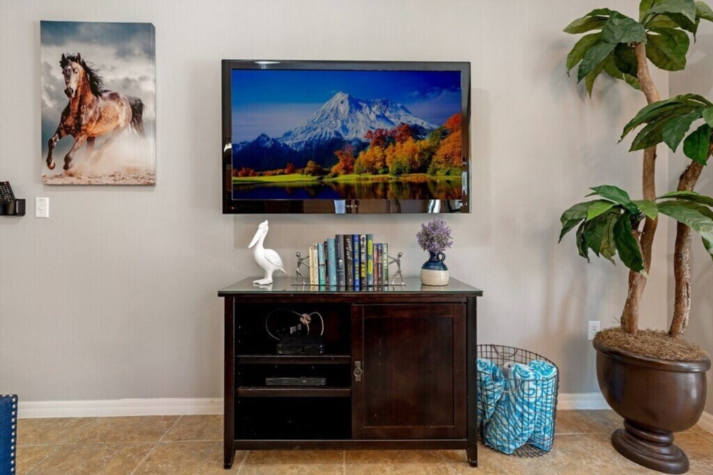 Discover Cypress Pointe Retreat, a luxurious 4-bedroom, 3.5-bathroom home located just minutes from Disney. This 2040 sq ft gem accommodates up to 10 guests with 2 king suites, 2 full beds, and 2 twin beds. Enjoy a private pool, BBQ, game room, and fully equipped kitchen, all nestled in a gated community. With serene décor, lush outdoor spaces, and top-notch amenities, it's the perfect place for families and groups seeking comfort, convenience, and relaxation. Step into inviting living spaces accented with serene blue and silver tones. The main living room features a plush sectional sofa and a flat-screen TV with Xbox One S for gaming or movie nights. The open-concept second living area boasts coastal decor and seamless access to the dining and kitchen spaces. The fully equipped kitchen includes modern appliances, abundant storage, and all the essentials for preparing meals. Gather around the elegant dining table for five under a beautiful chandelier, or enjoy casual meals at the breakfast bar with seating for four. Relax in the first-floor master king suite with a calming Zen ambiance, private patio views, and an en-suite bathroom with double vanities. Upstairs, the second master suite offers luxury with a spa-like bathroom featuring a soaking tub and shower. The additional bedrooms include a tropical-themed suite with two full beds and a playful twin bedroom, perfect for kids. Fun for all ages awaits in the Hollywood-themed game room, featuring pool, foosball, air hockey, and darts. Unwind on the private screened-in patio with lush greenery, a dining table for six, chaise lounges, and a curved south-facing pool. Fire up the BBQ for al fresco dining or simply soak in the tranquility of this tropical retreat. Pool heat is available for $30 per day with 24-hour advance notice required. BBQ rental is $50 if you bring your own propane or $80 with propane provided. Starter cleaning supplies are included and restocking is the guest's responsibility. Located minutes from Disney and close to Universal Studios, shopping outlets, and world-class golf courses, Cypress Pointe Retreat offers convenience and adventure for every traveler. No parties or events are allowed and quiet hours are from 10 PM to 8 AM. Self-check-in with a smart lock is available. Check-in is at 4 PM and check-out is at 10 AM, with flexibility upon request and additional fees. Trash must be disposed of daily in provided bins. A guest screening process will be conducted by a trusted partner to confirm your reservation and further instructions will be provided to complete this step. Includes a dedicated workspace and high-speed Wi-Fi. A laptop computer is not included. [SI]