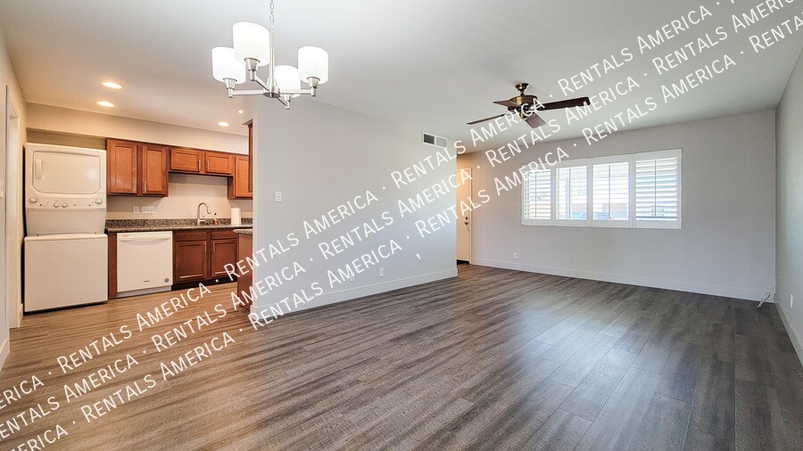 $500 off for a move in before February 15th! Lovely Sun City home in a 55+ only community available now! This 3-bedroom, 2-bath mid-century home has been wonderfully updated inside. New flooring, blinds & paint throughout as well as new cabinetry & updated appliances. There is lots of storage available, including a 2-car garage and an as-is storage room/workspace. The master bedroom features a bright, shiplap accent wall & updated bathroom. There is an attached Arizona room that makes for a great entertainment space and will be receiving new windows around July. New trim, patio & pavers to be installed in May. Gravel rock front & back yards are easy to maintain. There is some wildlife present in the area and the community features multiple golf courses. One Time Admin Fee: $300, Pet Deposit: $300/pet (One pet under 40lbs only), Municipal Tax: 0%, Service Fee: 2%. Resident Benefits Package: $29/month. Helping Heroes Discount Available! Carpet Ceramic Tile Disposal Dryer Garage Pets Allowed Washer