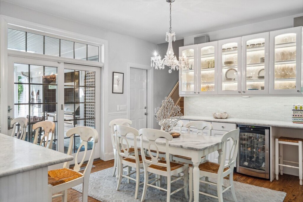 Southampton tradicional con tejas, excepcional y seis habitaciones con una amplia sala de estar, comedor y sala de entretenimiento con techos abovedados. Isla de cocina con área de desayuno y puertas corredizas que dan al porche cubierto a medida. Hay un segundo lado de la escalera que conduce a habitaciones privadas. Patio de club de campo que es hedged para disfrutar de la privacidad, con piscina climatizada, bañera de hidromasaje, la gazebo y ducha al aire libre. Un nivel inferior terminado de juegos ofrece fácil acceso al patio trasero. Un hermoso entorno tranquilo pero a solo minutos de playas, tiendas del pueblo y restaurantes.