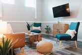 Welcome to your curated stay in downtown Johnson City, TN. Feel at home in this 1-bedroom, 1-bath apartment. This cozy apartment features a king-size bed, a comfortable couch in the living area, and a Smart TV with various entertainment options. The fully stocked kitchen is ready for you to prepare home-cooked meals. A free laundry room is located across the unit. Pets are welcome with a flat fee to cover the extra cleaning costs. A maximum of two pets are allowed, but no cats or birds. The pet fee is an additional $100 one-time charge. There will be additional fines for undisclosed or unapproved pets. Located in the heart of Johnson City's revitalized downtown area, this apartment offers easy access to local parks, outdoor activities, top-rated restaurants, and cafes. Explore diverse culinary options just steps away. The location is super walkable and is the perfect starting point for whatever you'd like to get into. Restaurants, parks, shops, bakeries, cafes, and breweries are all within a block or two. You might hear some noise from trains and nightlife. Quiet hours are observed between 10 pm and 8 am. There is a fine for house rule violations. If guests are found to have left an excessive mess or had a party which results in extra cleaning, guests will be responsible for extra cleaning charges. Smoking and vaping are not permitted inside the property and this violation will incur a $200 per day fee. Pets are not allowed on any furniture, including beds, sofas, and chairs. If there is evidence of pet hair found on furniture there will be an additional $75 deep clean fee. Pets should always be crated when left unattended inside the property. In the event that your pet has left waste matter inside the property, you will be charged additional fines. [SI]