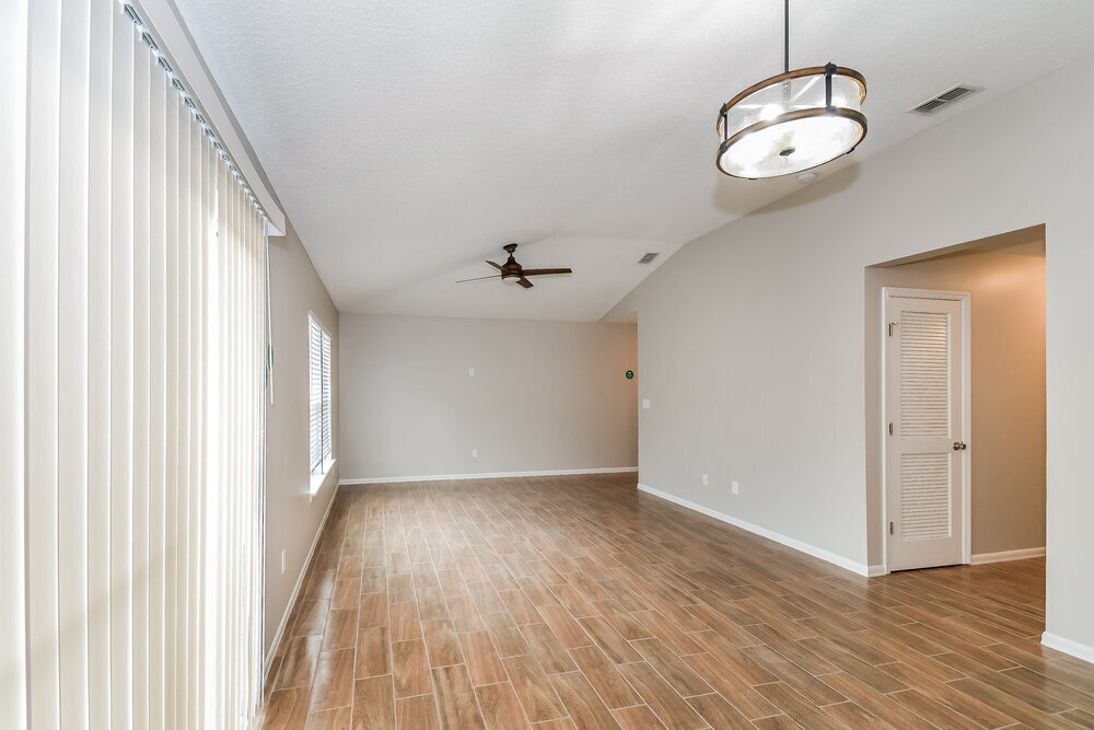 Tenga en cuenta que nuestras casas están disponibles por orden de llegada y no están reservadas hasta que el arrendamiento sea firmado por todos los solicitantes y se cobren los depósitos de garantía. El precio de esta casa es para alquilar y no estará disponible durante mucho tiempo. Solicítela ahora, mientras los residentes actuales se están preparando para mudarse, o llame hoy mismo para concertar una reunión con su especialista local en arrendamiento residencial Progress. Se sentirá como en su casa en esta residencia de alquiler de tres dormitorios y dos baños, cómoda y eficiente en Jacksonville. La luz natural se vierte en el área de estar con un techo altísimo y un ventilador para ayudar a reducir los costos de los servicios públicos. Para comer o preparar deliciosas comidas, la cocina cuenta con una isla con dos lavamanos de acero inoxidable. Las encimeras de granito realzan el ambiente de la cocina con la calidez de la piedra natural. En la suite principal, encontrará prácticos lavamanos con tocador doble. Una valla encierra el patio verde y con césped. Camine hasta el lago y el área de juegos del vecindario para divertirse y relajarse. El garaje de dos automóviles adjunto ofrece muchas áreas de estacionamiento y almacenamiento. Programe hoy mismo un recorrido por esta elegante y agradable casa de alquiler.
