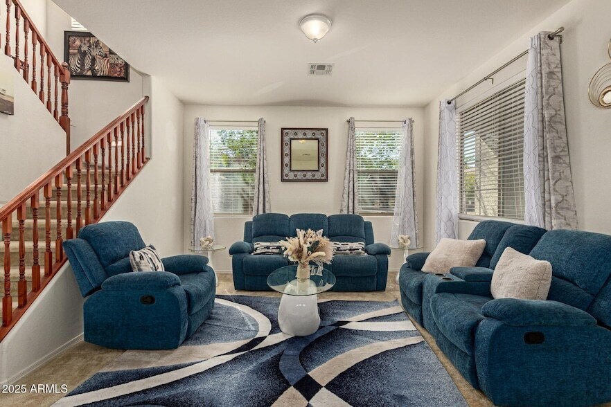 This 4-bedroom, 2.5-bath home is move-in ready and located on a desirable corner lot within walking distance of a school and community play area. Home comes fully furnished, including TVs, dining room furniture, and complete bedroom sets. The spacious floor plan offers comfortable living areas, ample bedroom space, and a functional layout ideal for families. Energy-efficient solar panels help reduce utility costs. Situated in a friendly, well-maintained community, this home offers comfort, convenience, and exceptional value.