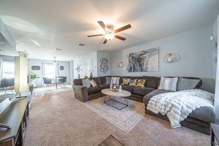 Property Id: 2110493 Welcome to your home away from home! Nestled in the peaceful Luckey Ranch Community, our renovated home blends modern luxury and comfort just minutes from downtown San Antonio, SeaWorld, Lackland AFB, and Texas A&M. Inside, the main floor offers a cozy living room with a memory foam sofa, spacious dining area, half-bath, and a fully equipped kitchen with high-end appliances, reverse osmosis filter, Ninja air fryer, coffee maker, fine cookware, Lenox silverware, and chinaware. Upstairs, the king suite features a walk-in closet, full bath, and workstation. Two queen bedrooms, also with workstations, share a full bath perfect for families or business travelers. Enjoy a fenced backyard with lounge seating, BBQ grill, and open views, plus a two-car garage with Wi-Fi door opener. Nearby Attractions • 13 min - JBSA-Lackland & Medina Training • 17 min - SeaWorld • 23 min - San Antonio River Walk • 25 min - San Antonio Airport • 26 min - San Antonio Zoo • 29 min - Six Flags Fiesta Texas