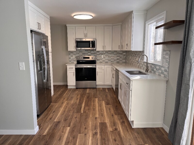 Property Id: 1674681 Newly renovated 3Br/1Bath home with detached 2-car garage on a beautiful half-acre lot in Champlin. Gorgeous new kitchen with all new appliances and new flooring throughout the home. Enjoy a spacious fully fenced backyard including a small garden, apple tree, and patio ideal for pets and entertaining. Third bedroom on the upper level has a mini-split heating and AC unit. Unfinished basement offers ample storage space and a new washer and dryer. Home is located within walking distance or a short drive to Emery Farms Playgroynd, Andrews Park/Splash Pad, Mississippi Crossings, shopping, and the Mississippi River. All utilities paid by tenant. Snow removal, lawn care and leaf cleanup included in monthly rent. Optional $150/month discount on rent if the tenant assumes responsibility for snow removal/lawn care. This is a pet-friendly and non-smoking home.