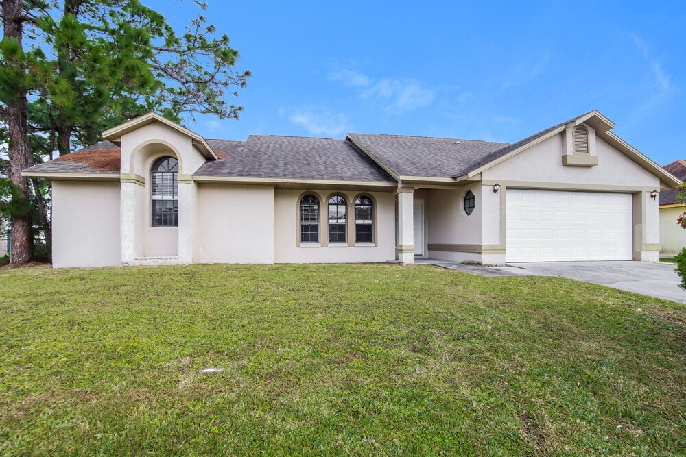 Tenga en cuenta que nuestras casas están disponibles por orden de llegada y no se reservan hasta que el arrendamiento sea firmado por todos los solicitantes y se cobren los depósitos de garantía. ¿Quieres hacer un tour por tu cuenta? Haga clic en el botón “Mostrarse” en la lista de esta casa o llame al para registrarse en una presentación autoguiada en el momento que mejor le convenga. Con un hermoso césped en la parte delantera y exuberantes palmeras en la parte trasera, esta casa de alquiler de un solo piso en Palm Bay causa una excelente primera impresión. Los 160 metros cuadrados de la casa incluyen tres dormitorios y dos baños, y hay mucho espacio para guardar y estacionar en el estacionamiento para dos automóviles. En la sala de estar, encontrará pisos de baldosas, un ventilador de techo y puertas corredizas de vidrio que se abren a un hermoso porche trasero blindado. La cocina con comedor impresionará a los cocineros caseros con su gran despensa, encimeras de granito y electrodomésticos de acero inoxidable. En el comedor adyacente cuelga una hermosa luz colgante. Descubra la enorme suite del dormitorio principal, con su techo abovedado extra alto. Cuenta con un vestidor para una sala de estar ordenada, además de un baño privado con bañera y ducha. ¡Reserve un recorrido por esta casa lo antes posible!
