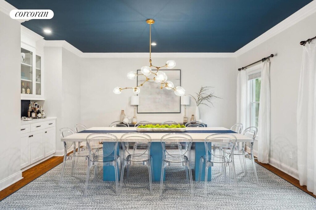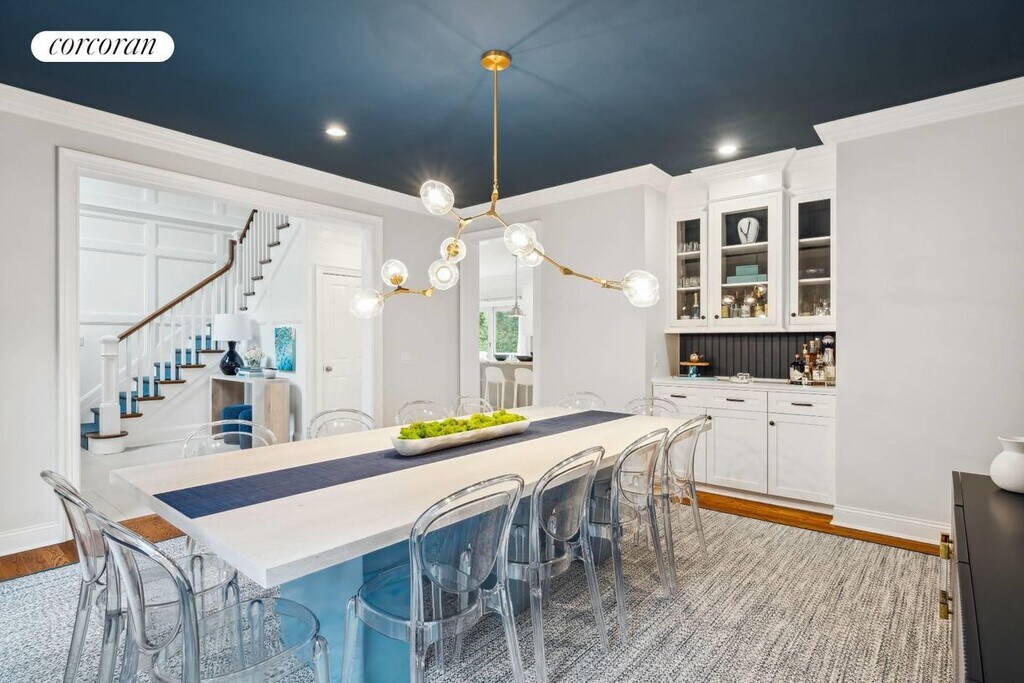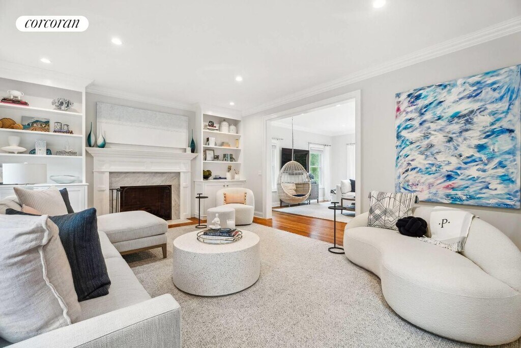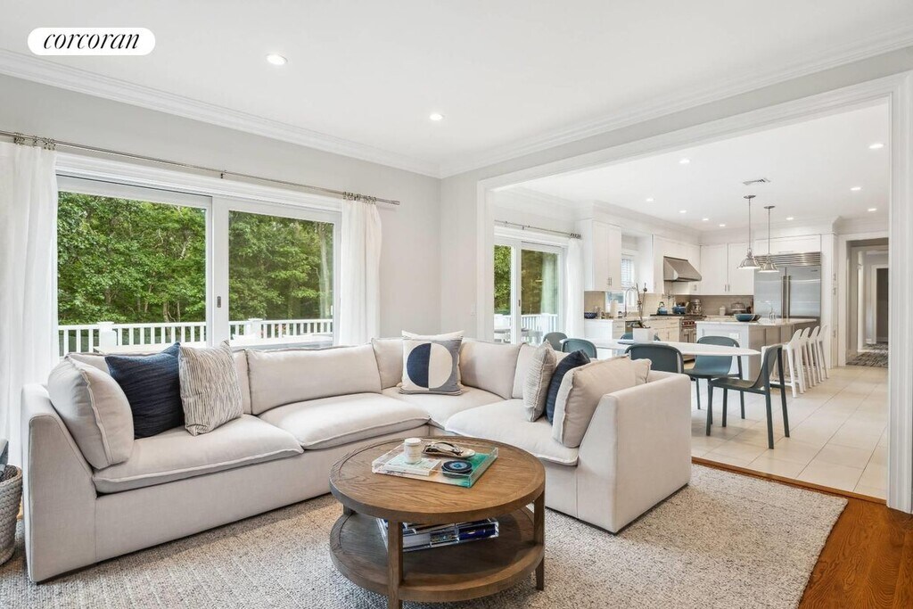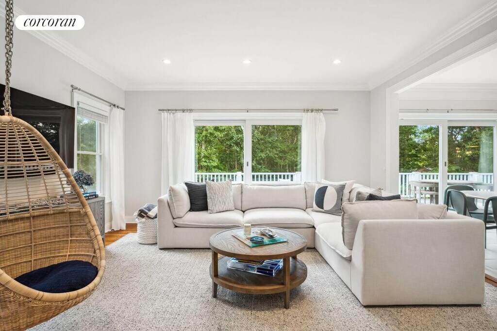 Exceptionally private, this like-new residence was built in 2018 on 0.99+/- acre. Sited on a cul-de-sac flag lot, the location is sufficiently remote to assure tranquility, yet conveniently equidistant to Southampton Village, Bridgehampton, and Sag Harbor. Enjoy summer to its fullest near Towd Point and Peconic Bay Beaches. Atlantic Ocean beaches are also within proximity. The residence is a balance of fantastic, well-designed outdoor spaces and contemporary interiors. Spacious and bright, the 5,789 +/- sf of living space provides 5 bedrooms and 6 full bathrooms. A welcoming double-height foyer leads to a living room with a fireplace and a formal dining room. The stunning gourmet kitchen is open to the sitting/TV room and features sleek quartz countertops, designer cabinets, Sub-Zero refrigerator, Wolf Range, a bar area, and three sinks. Both the sitting room and kitchen offer access to the 42+/- ft deck overlooking the pool area. This level also features an office, laundry room, full bathroom, bedroom and radiant heated 2-car garage with large loft playroom located above. The second-floor features 4 bedrooms, each with an en suite bath, including a luxe primary suite with a large walk-in closet and impeccable master bathroom. The lower-level features include 9' ceilings, radiant heat, a pool table, a gym, private home office, bathroom and walk-out access to the exterior. Outside, the property offers several entertaining areas including a sprawling mahogany deck with remote awning, and a beautiful resort-like lounge area with a 20' by 40' heated gunite pool, and spa. The pool is surrounded by custom masonry and stunning gardens highlight the grounds with color. Additional amenities include CAC, central vacuum, a highly efficient solar panel energy system, large bbq, outdoor pizza oven, firepit and sound system throughout outside. [[Rental Registration # PR240375]]