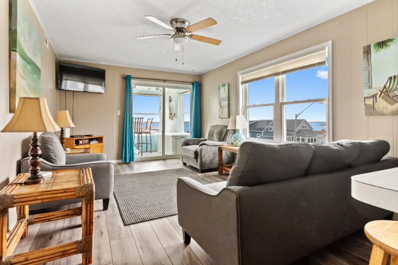 Property Id: 1633468 Escape to a peaceful off-season retreat in Ocean City, MD, available for month-to-month rentals from November through April. This charming 2-bedroom condo on 53rd Street offers stunning bay views from your private covered porch, making it the perfect coastal getaway during the quieter months. Step into a recently renovated space that blends modern comforts with bayside charm. The open living area features plush seating, a flat-screen TV, and large windows that fill the space with natural light. The fully equipped kitchen and dining table for four make meal prep and dining a breeze, while the covered porch invites you to enjoy meals al fresco with beautiful bay views. The master bedroom offers a plush king-sized bed, and the second bedroom has two queen beds, ideal for families or friends. A sleek bathroom with a tub/shower combo and plenty of towels ensures comfort throughout your stay.