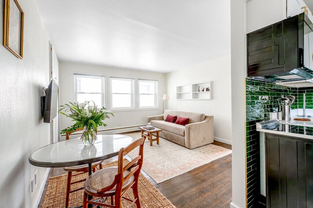The advertised rate of $2,677/month is the lowest available price, based on a 30 day(s) stay with a move-in date of July 13, 2026. Rates vary depending on the duration of stay, season, and other parameters. For exact pricing and additional pricing components, please visit our website and enter your desired move-in and move-out dates. The rate is applicable when billed upfront; it can be higher if billed in multiple payments. Feel at home in this spacious, fully updated 1-bedroom apartment in the heart of downtown Madison, offering a peaceful glimpse of Lake Monona. Located on the vibrant Isthmus between Lake Monona and Lake Mendota, this apartment is ideal for traveling nurses, medical professionals, university researchers/professors, remote professionals, and anyone seeking a peaceful, centrally located Madison home. This apartment features a renovated kitchen and bath, a cozy living room, a smart TV, fast Wi-Fi, blackout blinds, and a window AC unit. The fully equipped kitchen ensures you have everything you need. A white noise machine is provided. One reserved parking space is available onsite. This apartment is pet-friendly. This centrally located apartment is a short distance from UW Hospital & Clinics, UnityPoint Meriter, SSM Health St. Marys, and the University of Wisconsin-Madison. Walk to Capitol Square, State Street, Monona lakefront, groceries, cafés, and restaurants. Sounds from cars and trucks (garbage trucks) are common for city living. A new fence will be installed in Spring 2026 to create a fully enclosed backyard perfect for dogs and added privacy. New free laundry will be installed in Spring 2026, located in the stair hallway between the one-bedroom units and shared by just one other unit. Includes a dedicated desk with a comfortable desk chair. [SI]