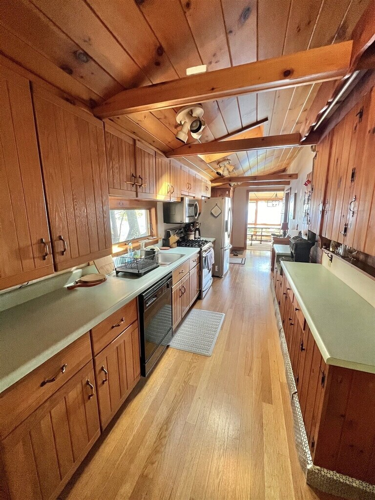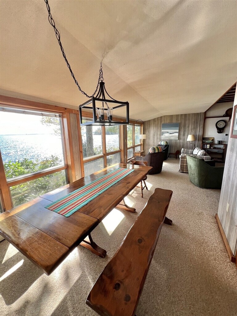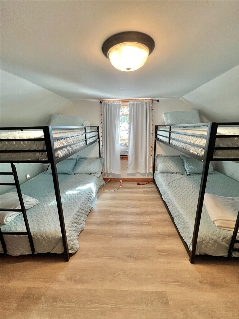 Come enjoy the lake at this fun Sebago retreat, a 5-bedroom, 2-bathroom home situated on Sebago Lake with over 120 feet of lakefront for all your outdoor activities. This home, sitting just 30 feet from the water's edge on the western shore, offers breathtaking panoramic views and faces east for stunning sunrise views. The property is secluded on a serene dirt road, offering ample privacy. The waterfront provides an ideal location to enjoy the sights and sounds of waves crashing against the rocky shoreline. A large deck houses a 10-foot picnic table and umbrella for guests to enjoy outdoor meals. From the picnic deck, a path leads to the waterfront where you can access two docks and a mooring. The waterfront area is rocky, with scattered boulders, providing an ideal location to enjoy the sights and sounds of waves crashing against the rocks. The spacious home includes 5 bedrooms and 2 bathrooms, perfect for multiple families. Two bedrooms are located on the first floor and three bedrooms are located on the second floor, including a bunk room for kids or adults. Dogs are considered with a $125 fee. The property includes a dock and mooring, with the requirement that boats must be moored unless loading or unloading. Linens and towels are provided for guests. This home is positioned on the western shore of Sebago Lake, offering stunning sunrise views and a large wooded lot just steps away from the lake. The secluded location on a serene dirt road provides ample privacy while still allowing easy access to the lake's activities. Smoking is not allowed on the property. The water source is a well, and the home is equipped with internet, a washer and dryer, a dishwasher, a firepit, fans, window AC, a gas grill, and outdoor furniture. A coffee drip is available for use. [SI]