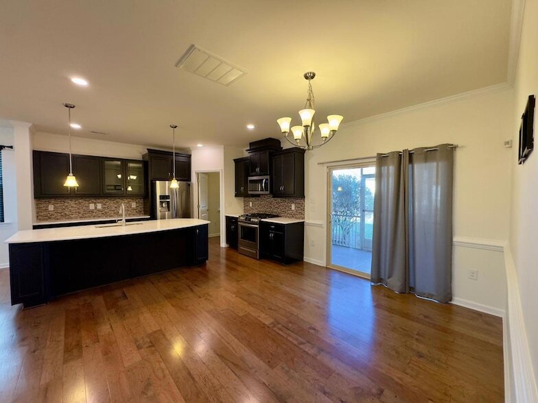 Beautiful single family Home with 2 car garage available in Morrisville. Fantastic location, close to RTP, RDU, major highways and shopping, entertainment! Open floor plan with spacious family room, screened porch for relaxing, and a dream kitchen with SS appliances, quartz countertop, gas range, tile backsplash, enormous island, huge walk-in pantry and lots of counter space. Main level also has guest room with full bath and as well as a bonus room. Second floor includes primary suite with dual closets and luxury bath, secondary bedrooms w/shared bath and a MEDIA room. Enjoy community swimming pool, tennis courts and play area for kids!