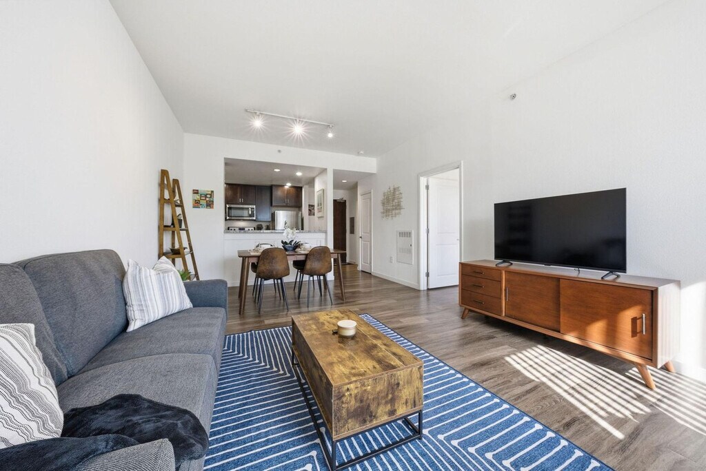 Experience modern luxury living in this 1-bedroom apartment in San Francisco’s Mission Bay. Feel at home in this perfectly situated apartment near Oracle Park, Chase Center, UCSF, and the scenic waterfront. From sleek modern finishes to thoughtfully designed spaces, this fully furnished apartment offers the perfect balance of comfort and productivity. It includes an open kitchen with granite countertops, stainless steel appliances, hardwood-style flooring, recessed lighting, high ceilings, and an in-unit washer/dryer. This unit also includes a private balcony, perfect for enjoying fresh air or a morning coffee. Enjoy access to the fitness center with cardio, strength, and free weights, business center, conference room, Wi-Fi in common areas, clubhouse with catering kitchen, resident lounge, billiards room, courtyard with outdoor seating, barbecue areas, bocce court, resident app for scheduling amenity spaces and online service requests, and reserved parking garage. Guest parking is available; inquire for rates. Reserved parking is based on availability. Early check-in from 10am-3pm will incur a fee of $75. Early check-in before 10am will incur a fee of 1 full night's rent (based on selected dates). Late check-out from 11am-3pm will incur a fee of $75. Late check-out after 3pm will incur a fee of 1 full night's rent (based on selected dates). Late check-outs must be requested at least 48 hours in advance. Strata offers unmatched access to dining, shopping, and entertainment, plus seamless connectivity with Caltrain, Muni, I-280, and US-101. Internet speeds are not guaranteed and may fluctuate based on your computer model and the router location. A laptop computer is not included in the home office set-up. Includes private high-speed internet, standing desk (Uplift), ergonomic work chair (Uplift), 34-inch ultra-wide monitor (Samsung), microphone (Blue Yeti), webcam (Logitech), computer speakers (Bose), LED streaming light, keyboard (Logitech), mouse (Logitech), laptop stand, and TOTU 16-in-1 Triple Display USB-C 3.1 Docking Station. Partners reserve the right to conduct secure ID verification, background checks and request Proof of Income. Guests will have 24 hours to complete these steps. Booking confirmation is contingent upon the successful completion of these checks, as well as meeting the minimum eligibility requirements. [SI]
