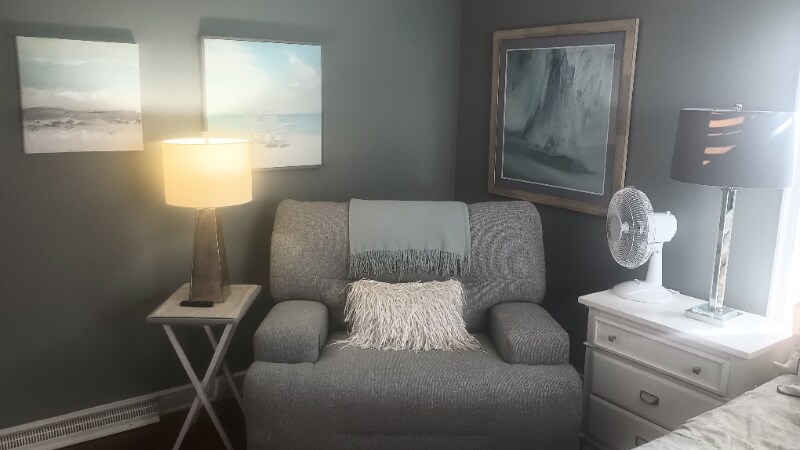 Property Id: 2255559 Beautiful renovated home. Room is furnished. Thirty two inch tv with streaming channel, power recliner with adjustable headrest and retro mini refrigerator included. Private bathroom. Close to High Point University.