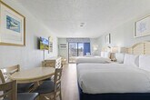 The Studio Seamist Driftwood is a beautifully appointed studio perfect for couples or solo travelers seeking a peaceful beachside getaway. Situated in a prime location just steps away from the Atlantic Ocean, this studio offers stunning ocean views and easy access to the area's best attractions. Feel at home as you step inside the bright and airy space, tastefully decorated with beach-inspired decor and modern amenities. The sleeping area is furnished with two queen-size beds adorned with soft linens and fluffy pillows, ensuring a comfortable and restful night's sleep. There's also a small dining area for enjoying meals or a quick snack, and a fully equipped kitchen for preparing your own meals and snacks. The studio features a private balcony offering breathtaking partial ocean views, perfect for enjoying your morning coffee or watching the sunset over the horizon. Free parking is available on the premises. The first parking lot is located directly off South Ocean Boulevard, across the street from Rita's Ice Cream, and additional lined parking spaces are located on the right side of 13th Avenue if you are heading towards 1207 South Ocean. Close to all the local attractions, amusements, shopping outlets, and favorite restaurants, this studio is ideally located for exploring the best of the area. Nearby attractions include Family Kingdom Amusement Park, Jungle Lagoon, McAdoos Beach Bar, Family Kingdom Water Park, Myrtle Waves Water Park, Ripley's Aquarium, Myrtle Wood Golf Course, The Carolina Opry, Pirates Voyage, and Broadway at the Beach. Grilling is prohibited and any violation of this policy will incur a $200 fine. Bicycles, motorcycles, mopeds, and trailers are not allowed. No smoking is allowed in the unit or on the balcony, and any violation of the smoking policy will incur a $250 fine plus cleaning costs necessary to remove smoke odors. No pets are allowed, with a $200 fine for any violation. Gatherings of more than four people, including both overnight guests and visitors, are not allowed and may be subject to eviction. House parties and illegal substances are strictly prohibited and grounds for immediate eviction. Leaving the unit later than the check-out time will incur a late check-out penalty starting from $500. [SI]
