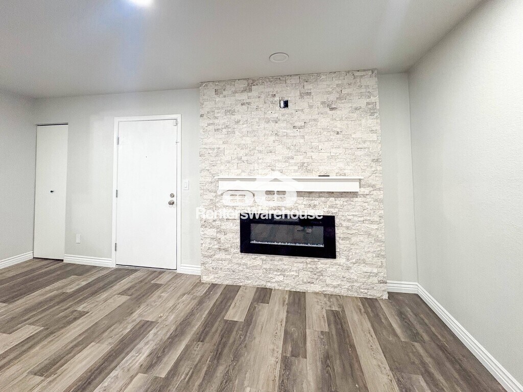 Welcome home to this beautifully updated ground-floor condo in Aurora’s East Ridge/Ptarmigan Park area. This spacious 2-bedroom, 2-bath unit offers a practical layout with thoughtful upgrades and everyday comfort in mind. Inside, you’ll find LVP flooring throughout, an electric fireplace for a cozy touch, and an updated kitchen featuring stainless steel appliances and a classic subway tile backsplash. The sliding glass door opens to your private balcony/patio, perfect for relaxing outside or storing extra gear. Both bedrooms include walk-in closets, providing plenty of storage. The primary suite has its own attached bathroom, while the second bedroom enjoys access to a full bath across the hall — ideal for roommates or guests. Additional highlights include: • In-unit laundry • Two assigned parking spaces • Water and trash included in rent • Community swimming pool access • Convenient ground-floor access — no stairs • Located near shopping, parks, and major routes for easy commuting Dogs ok w/landlord approval