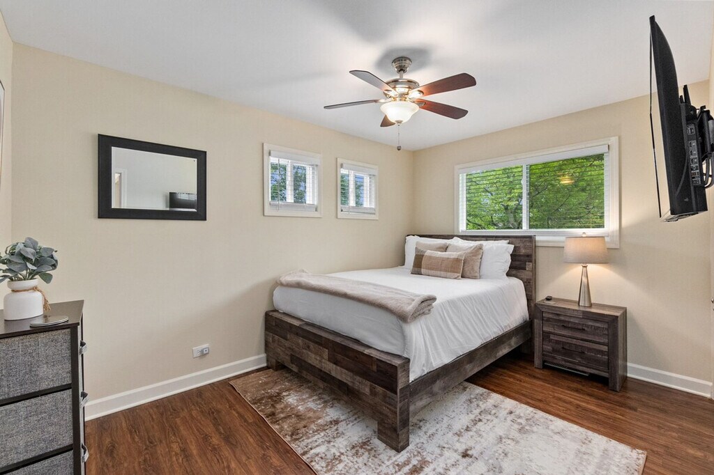 Feel at home in this renovated 1450 sq ft unit, located 23 minutes from O’Hare Airport and 35 minutes from downtown Chicago. This home features 3 bedrooms and 2 full bathrooms. This single-family home includes driveway parking and additional street parking if needed. The kitchen is fully equipped with plenty of utensils, including cooking spices and oils. For entertainment, there are cards, 50+ board games, and an arcade cabinet with 2000 classic games. Technology includes 4 LCD televisions with access to Hulu, Disney, and ESPN streaming services (English & Spanish), Netflix and Prime Video access (using your own login), up to 300 MBPS internet speed with ethernet hard line available, Wi-Fi throughout the entire home, a 55" TV in the living area, 40" TVs in the bedrooms, and a sound bar in the living room. For children, there is a pack and play sleeper, a stroller, a high chair, and a booster seat. Air mattress is available. This property is children friendly. The detached garage is not available for use; please use the driveway for parking. If the home has a fireplace, it is not for guest use. [SI]