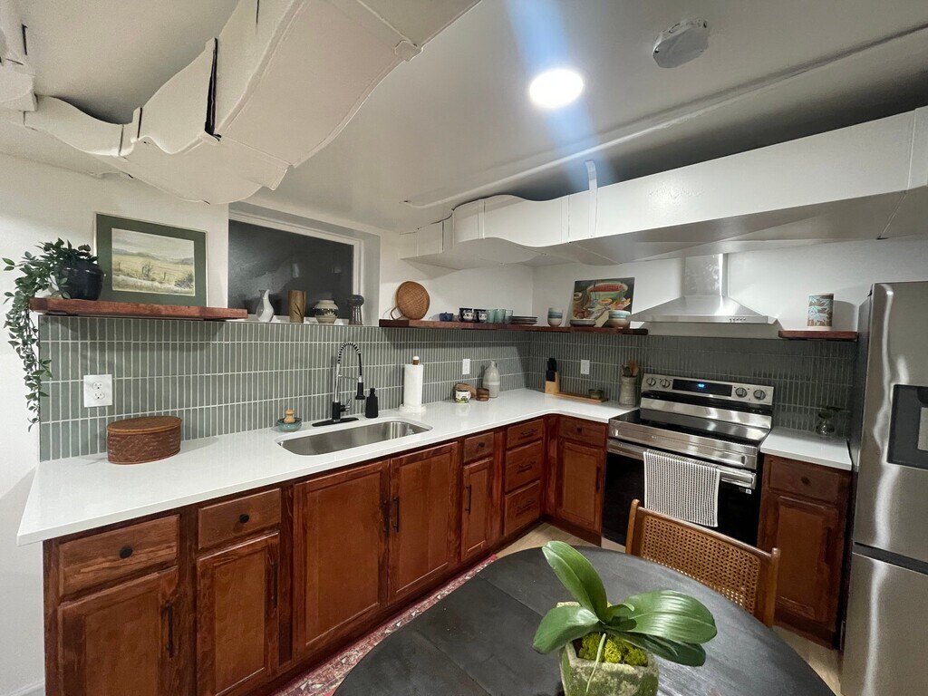 Property Id: 2483386 This private part of the home consists of one large bedroom and a full bath. Along with a fully equipped kitchen and laundry room. It has been fully renovated and furnished to make your stay feel as relaxing as possible.