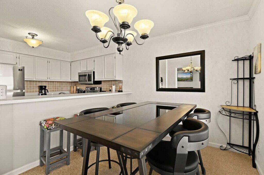 Step into a private mountain retreat at the top of Beech Mountain with this inviting 2-bedroom, 2-bathroom condo located on the 3rd floor. Feel at home with easy access to parking and proximity to the main clubhouse. Enjoy the indoor pool, hot tubs, steam room, and exercise room, all designed for your relaxation and enjoyment. The condo's fully equipped kitchen and spacious dining area provide the perfect setting for a cozy meal, while the comfortable living room with an electric fireplace invites you to unwind. Step out onto the outdoor deck to take in the stunning mountain views. This 1,000-square-foot condo offers a fully equipped kitchen with a dining area that feels like your personal tavern. The kitchen includes a microwave, stove, oven, refrigerator/freezer, coffee maker, dishwasher, and all necessary cookware and utensils. The living room features a comfortable sofa, TV, and electric fireplace, with access to the outdoor deck. A self-inflating air mattress is available for additional sleeping arrangements in the living room. The separate laundry room includes a full-sized washer and dryer, ensuring convenience during your stay. Early check-in and late check-out are available for a fee of $25 per hour, subject to availability. Guests are encouraged to check with the host regarding the availability of the pool and hot tub to ensure their stay meets expectations. Nestled in the charming vacation town of Beech Mountain, NC, this condo offers a serene setting with mesmerizing natural surroundings. Enjoy nearby attractions such as skiing, snowboarding, snow tubing, eco-tourism, zip-lining, mountain biking, off-road ATVs, rafting, fly fishing, hiking, golf, fine dining, and shopping. A walking path leads to the Town Playground, Free Sledding Hill, Brick Oven Pizza, Fred's General Store, and retail shops near the town visitor center. Quiet hours are observed from 10 pm to 8 am. Smoking is not allowed, and only guests designated in the reservation may stay overnight. A 4WD or AWD vehicle is highly recommended for accessing Beech Mountain, especially during winter months, and snow chains are suggested. Cameras may be installed in public areas like entries and parking areas. There is no daily housekeeping service, and guests are responsible for keeping the property and furnishings in good order. A remote work-friendly environment is provided with Wi-Fi access throughout the condo. A laptop computer is not included.