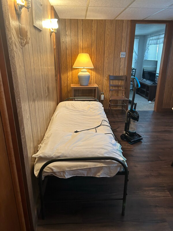 Property Id: 2352927 Small 3 bedroom one bath on large 2 lot property. Includes all furniture and everything you need for someone who is a first time renter or relocating, Such as kitchen utensils, towels, hair dryer, linens, extra linens, broom, snow shovel, sweeper, iron, and small ceramic heaters for bedrooms. Home is small with centralized wall heater. Window air conditioning. Bedrooms are small and include one twin and two single beds. There is also a futon in living room that sleeps 2 and a small cott in dining room. On site laundry in dining room. Keypad entry.