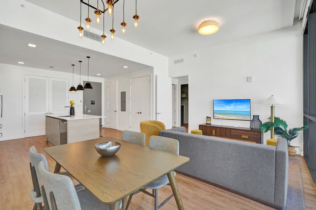 The advertised rate of $4,195/month is the lowest available price, based on a 30 day(s) stay with a move-in date of August 5, 2026. Rates vary depending on the duration of stay, season, and other parameters. For exact pricing and additional pricing components, please visit our website and enter your desired move-in and move-out dates. The rate is applicable when billed upfront; it can be higher if billed in multiple payments. Experience a refined Miami Beach escape at 17WEST, a contemporary apartment designed for comfort, style, and convenience. This elegant apartment offers 927 sq. ft. of living space with 1-bedroom and 1.5 bathrooms. Step into a space that feels both stylish and familiar, where modern design meets everyday comfort. This thoughtfully designed apartment blends home-like warmth with sophistication, offering everything you need for a seamless and relaxing stay. It features a king-size bed with premium linens, a queen sofa sleeper, a private balcony with outdoor seating, a full kitchen with stainless steel appliances, cookware, and dishware, an in-unit washer and dryer, a Smart TV with streaming apps, high-speed Wi-Fi, a dining table for four, central A/C, and blackout curtains. On-site parking is available for $40 per night. This apartment is steps from Lincoln Road Mall and Sunset Harbour Marina. Walk to boutiques, cafés, and waterfront restaurants, and you're just minutes from Ocean Drive, Collins Avenue, and South Beach’s beaches. Downtown Miami, Wynwood, and Brickell are 15 minutes away, and Miami International Airport (MIA) is 20 minutes away. The primary guest must be 21 years or older to check in. No parties, gatherings, or events are permitted, and any violation may result in a $500 fine and immediate removal without refund. No indoor smoking is permitted (includes cigarettes, vaping, hookah, cigars, or cannabis), but outdoor smoking is permitted at least 10 feet from the building, with doors and windows closed; a $500 fine will be assessed for any violation, which may result in immediate cancellation without refund. Pets must be approved before booking, and the pet fee must be paid prior to receiving check-in instructions. Any noise complaint may result in a $500 fine and/or cancellation without refund. Tampering with cameras or any connected devices will result in a $1,000 fine and may result in immediate cancellation without refund. The property is equipped with exterior security cameras for guest safety. Cameras record audio and video but do not monitor private areas. South Florida’s subtropical climate may occasionally allow geckos or insects inside, despite routine pest control, and refunds are not provided for such occurrences. Please note that the partner will place a $350 refundable authorization hold on a credit or debit card about 72 hours before arrival for security. If damages or policy violations occur, related charges may apply; otherwise, the hold is released after checkout and processed within 5-7 business days. [SI]