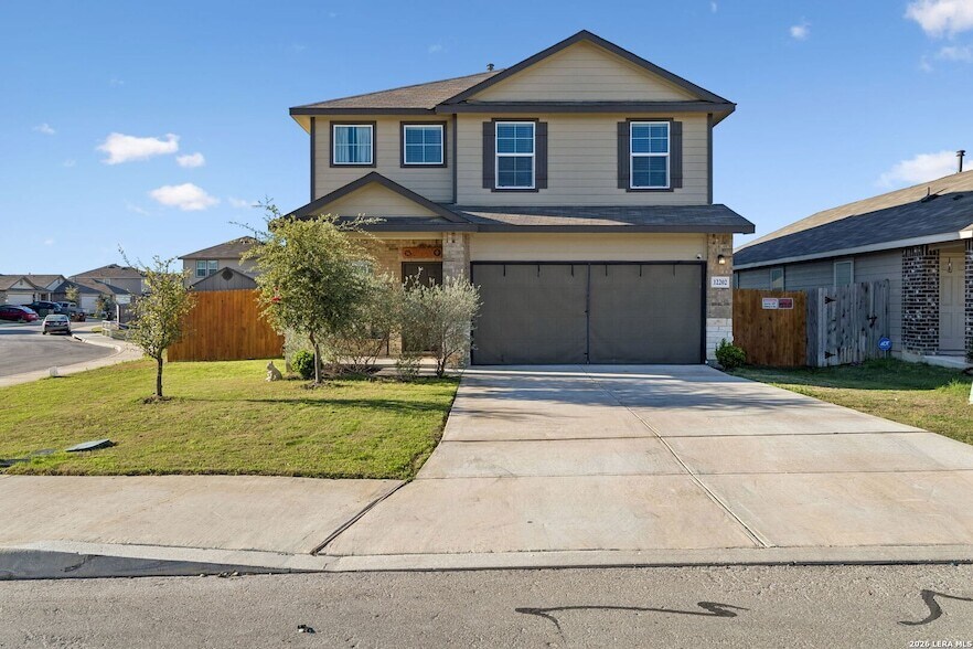 Welcome home to this spacious 5-bedroom, 3-bathroom home offering nearly 3,000 square feet of living space in a convenient and growing area of San Antonio. Sitting proudly on a corner lot, this home offers added space, curb appeal, and a sense of openness that stands out in the neighborhood. Inside, the layout provides plenty of room to spread out, making it ideal for larger households, guests, or those who simply enjoy extra living space. One of the highlight features is a guest/secondary primary suite downstairs for added comfort and convenience. Upstairs, you walk up to a living area or open area that could be transformed into a playroom. Location is a major factor! Step into your backyard and enjoy your morning coffee on the added concrete patio slab, which gives your yard an upscale look perfect for hosting parties. Situated in the far northwest of the city, you're just minutes from SeaWorld San Antonio, Lackland Air Force Base, and a wide variety of shopping, dining, and entertainment options along Loop 1604 and Highway 151. Nearby attractions such as local parks and entertainment venues make it easy to enjoy everything the west side of the city has to offer. Quick access to major highways also makes commuting to downtown San Antonio or other parts of the city simple and convenient.
