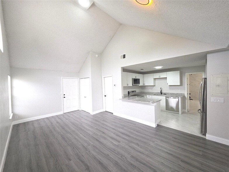 Welcome to this stunning 2-bedroom, 2-bathroom home located in the vibrant city of Tampa, FL. This property boasts an open floorplan with high ceilings and cathedral ceiling features, creating a spacious and airy atmosphere. The kitchen and family room combo is a standout, equipped with solid wood cabinets, granite countertops, and stainless steel appliances. The luxury vinyl flooring adds a touch of elegance to the home. The living room and dining room combo is perfect for entertaining guests or enjoying a cozy night in. The home also features ceiling fans for added comfort. The amenities don't stop at the property line. The community offers a clubhouse, a fitness center, and a pool for your enjoyment. The breakfast bar is an added bonus, perfect for those quick meals or casual conversations. Schedule our viewing today.