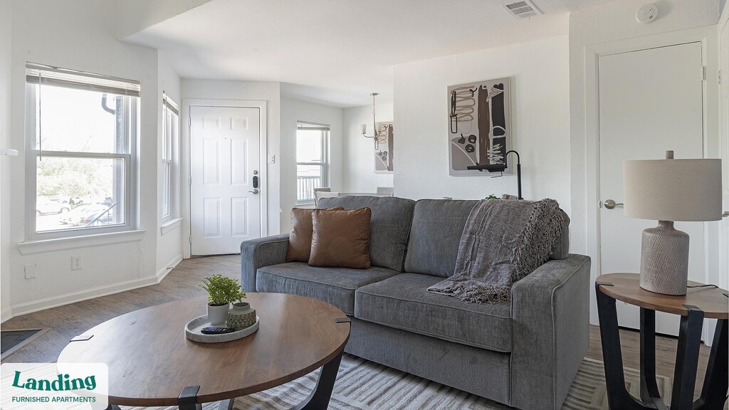 Landing offers flexible lease terms from weeks to months. Please always visit our website or contact us for the latest pricing & availability. Stay longer, save more: 6-Month Minimum base rent: starts at $1699/mo 12-Month Minimum base rent: starts at $1542/mo Landing offers flexible leases across a network of over 35,000 fully-furnished apartments throughout 375+ cities so you can rent on your terms, practically anywhere, and avoid the hassle of paying deposits or application fees. Visit to learn about all the benefits of a Landing membership, see our competitive up-to-date pricing, explore available apartments, take virtual tours, and make reservations online without jumping through traditional rental hoops. Landing's apartments at Eagle Creek Landing are designed for comfortable, easy living, with the ability to stay as long as you like. Experience living with Landing Every apartment is outfitted with all the modern essentials including: custom-designed furnishings, a fully-equipped kitchen with deluxe stainless steel appliances, a gourmet coffee maker, premium linens, Smart TVs, and incredibly fast, reliable internet for working from home. When you live with Landing, you'll enjoy a hassle-free experience with the added benefit of 24/7 access to our dedicated member experience team. Some of the nitty-gritty: a background check and proof of income are required; we're completely smoke-free; bundled utility packages and pricing vary based on length of stay; pet-friendly options available; listed price reflects a 12-month minimum stay.